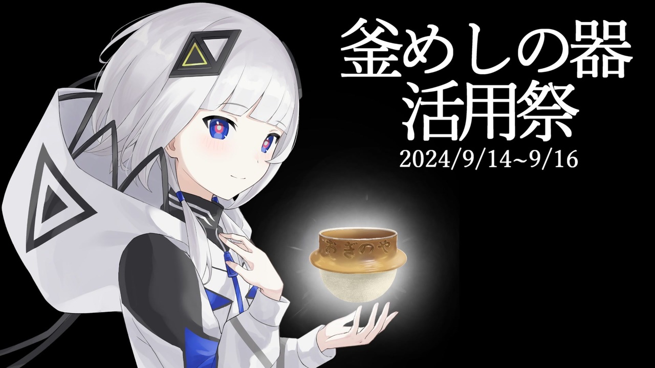 (投稿祭告知動画は)初投稿です<br>私の動画のキーアイテムとも言える荻野屋様の「峠の釜めし」の器。<br>この器が活用されているシーンがもっと見てみたい!<br>という事で、投稿祭を主催する事にしました。<br>皆様のご参加、心よりお待ちしています!<br><br><span style="color: #ff0000; font-size: 16px;"><strong>開催期間:2024年9月14日0時00分~9月16日23時59分</strong></span><br><span style="font-size: 16px;"><strong>リマインド・質問解答動画→<a href="https://www.nicovideo.jp/watch/sm43957310" class="watch">sm43957310</a></strong></span><br><span style="color: #ff0000; font-size: 16px;"><strong>公式ロゴはこちら!</strong></span><span style="font-size: 16px;"><strong>(制作:向坂(<a href="https://www.nicovideo.jp/user/2136769" target="_blank" rel="noopener">user/2136769</a>)様):<a href="https://seiga.nicovideo.jp/seiga/im11456309" target="_blank" rel="noopener">im11456309</a><br>投稿祭タグ:</strong></span><span style="color: #262626; font-size: 16px;"><strong>#釜めしの器活用祭2024</strong></span><br><br>荻野屋様公式HP:<a href="https://www.oginoya.co.jp/" target="_blank" rel="noopener nofollow">https://www.oginoya.co.jp/</a><br>峠の釜めしの公式通販:<a href="https://ec.oginoya.co.jp/" target="_blank" rel="noopener nofollow">https://ec.oginoya.co.jp/</a><br><br><span style="color: #ff0000;"><strong>コメントやいいね、チャンネル登録して頂けると喜びます!</strong></span><br><br>投稿者のYoutubeチャンネルはこちらから→<a href="https://www.youtube.com/@afterglow9702" target="_blank" rel="noopener nofollow">https://www.youtube.com/@afterglow9702</a><br>X(旧Twitter)もフォローお願いします!→<a href="https://twitter.com/afterglow9702" target="_blank" rel="noopener nofollow">https://twitter.com/afterglow9702</a><br><br>使用ツール:NodoAme(作:いぬいぬGames様 <a href="https://www.nicovideo.jp/watch/sm98013232" class="watch">sm98013232</a>)<br>演技指導:すずきつづみ(CeVIO AI)<br>立ち絵:はゆ茶様 <a href="https://www.nicovideo.jp/watch/sm39971378" class="watch">sm39971378</a> <a href="https://seiga.nicovideo.jp/seiga/im10877460" target="_blank" rel="noopener">im10877460</a><br> misho様 <a href="https://seiga.nicovideo.jp/seiga/im11347997" target="_blank" rel="noopener">im11347997</a> <a href="https://seiga.nicovideo.jp/seiga/im11363828" target="_blank" rel="noopener">im11363828</a><br> 鬼躯様 <a href="https://seiga.nicovideo.jp/seiga/im11203502" target="_blank" rel="noopener">im11203502</a> <br> Tsarubu様 <a href="https://seiga.nicovideo.jp/seiga/im11416909" target="_blank" rel="noopener">im11416909</a><br>音楽的同位体KV:らいす様 <a href="https://twitter.com/rice01200120" target="_blank" rel="noopener nofollow">https://twitter.com/rice01200120</a><br>BGM:騒音の無い世界様(コンテンツツリー参照)
