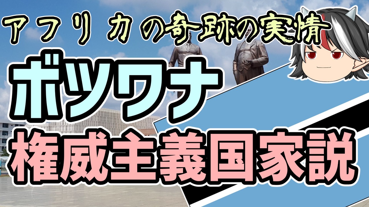 今回の動画はアフリカ推しの魔理沙様主催の「アフリカ祭」参加動画になります。 <br>そんなアフリカのなかで一部界隈では有名なボツワナの実情に迫った動画になります。 <br>対話式にしたら想像以上に偏った感じになったので今回は正邪単独です。 <br>ここまでひどいとは思っていなかった…正直知りたくなかった…… <br>民主主義とは何か、権威主義とは何か、色々考えさせる回ですね()<br><br>ご意見・ご感想・ご要望があればぜひコメントしてください。 <br><br>前回→<a href="https://www.nicovideo.jp/watch/sm43254672" class="watch">sm43254672</a>【産業革命低成長説】<br>マイリスト→<a href="https://www.nicovideo.jp/mylist/75734410" target="_blank" rel="noopener">mylist/75734410</a><br><br><br>ついったー <a href="https://twitter.com/youz26400114" target="_blank" rel="noopener nofollow">https://twitter.com/youz26400114</a> <br><br>欲しいものリスト <a href="https://www.amazon.co.jp/hz/wishlist/ls/26SYYFRSTGV7Y/" target="_blank" rel="noopener nofollow">https://www.amazon.co.jp/hz/wishlist/ls/26SYYFRSTGV7Y/</a><br><br>