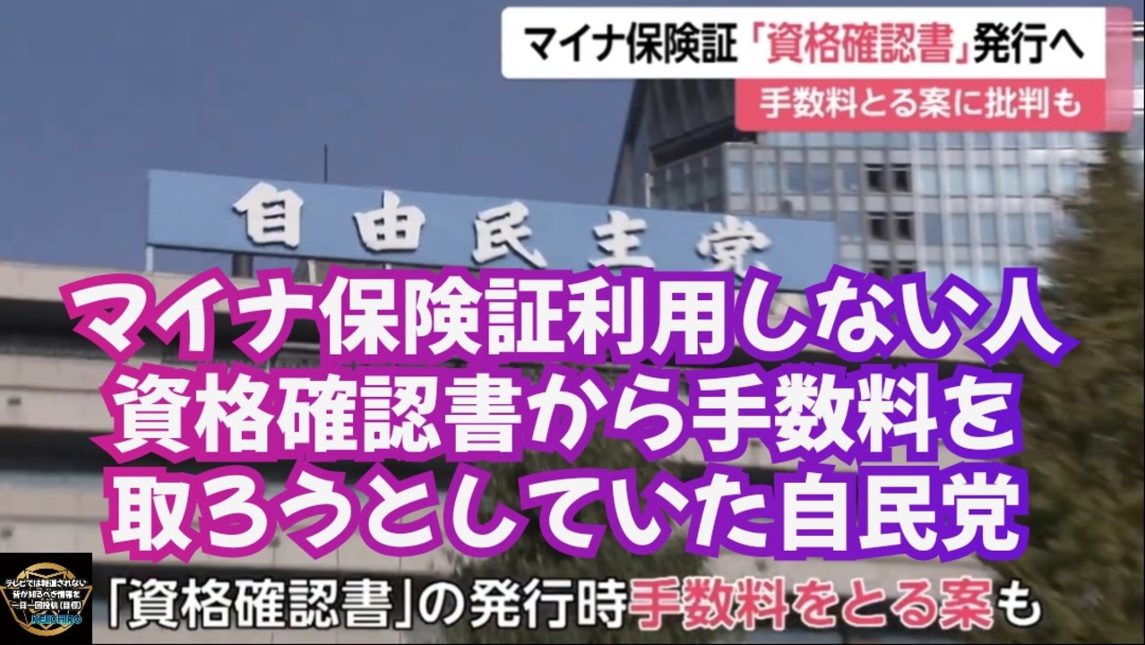 ※貼り忘れてました 失礼しました<br>資格確認書情報 東京新聞<br><a href="https://www.tokyo-np.co.jp/article/330736" target="_blank" rel="noopener nofollow">https://www.tokyo-np.co.jp/article/330736</a><br><br><br><br>2023年の映像と記事<br>国民のための政治とはかけ離れたまるで敵国への制裁<br><br>あいひんさんのポストより引用<br><br>マイナンバーと公金受取口座のひも付けに対し、通知を出して”拒否”の返事がなければ自動的に”同意した”とみなす『口座情報マイナンバーカードひも付け関連法案』を提出した政府は、カードがない人のために”資格確認書”を発行する方向で調整、発行の際に手数料をとる案も浮上。<br><br>送りつけ商法の次は罰金。<br><br><a href="https://x.com/BABYLONBU5TER/status/1623651606289076224?t=cusRLmUknDjFJH1qu9PXmw&s=19" target="_blank" rel="noopener nofollow">https://x.com/BABYLONBU5TER/status/1623651606289076224?t=cusRLmUknDjFJH1qu9PXmw&s=19</a><br><br>マイナンバーカード マイナ保険証 手数料 資格確認書 公金受取口座 紐付け 政府 日本政府 自民党 自由民主党 日本の政治家は日本人嫌いすぎ デジタル監視社会 グローバリスト グローバリズム 送りつけ商法 罰金 グローバル全体主義 全体主義<br><br><br />著作権、肖像権に配慮して作成しております。<br><br>◆気になったニュースの台本!?<br>メモ代わりに作った台本をそのままあげてます<br><a href="https://keiichiro8140.hatenablog.com/." target="_blank" rel="noopener nofollow">https://keiichiro8140.hatenablog.com/.</a><br><br><br>ここからはシリーズ紹介<br><br><br>◆ ワクチン解毒・デトックス<br><a href="https://x.gd/fZweg" target="_blank" rel="noopener nofollow">https://x.gd/fZweg</a><br><br>◆ウイリアム・マキス博士のがん治療(イベルメクチン・フェンベンダゾール等)<br><a href="https://x.gd/AtFYS" target="_blank" rel="noopener nofollow">https://x.gd/AtFYS</a><br><br>◆予防接種健康被害救済制度<br><a href="https://x.gd/0xK9x" target="_blank" rel="noopener nofollow">https://x.gd/0xK9x</a><br><br>◆気になったニュース #1501~<br><br>◆ 【ショートver】気になったニュース<br><a href="https://x.gd/7MxXC" target="_blank" rel="noopener nofollow">https://x.gd/7MxXC</a><br><br>◆ 気になったニュース #1001~<br><a href="https://x.gd/Lp8gv" target="_blank" rel="noopener nofollow">https://x.gd/Lp8gv</a><br><br>◆ 気になったニュース #501~<br><a href="https://x.gd/EmbS4" target="_blank" rel="noopener nofollow">https://x.gd/EmbS4</a><br><br>◆ 気になったニュース #1~#500<br><a href="https://x.gd/uPhNb" target="_blank" rel="noopener nofollow">https://x.gd/uPhNb</a><br><br>◆ X(旧Twitter)・テレグラムで気になった情報<br><a href="https://x.gd/YG6FT" target="_blank" rel="noopener nofollow">https://x.gd/YG6FT</a><br><br>◆ 日比谷5万人パレードデ⚪生放送アーカイブ動画<br><a href="https://x.gd/3CHJv" target="_blank" rel="noopener nofollow">https://x.gd/3CHJv</a><br><br>◆日比谷5万人パレード⚪モのマイリスト作ってみました<br><a href="https://nico.ms/mylist/76828848?ref=sp_other" target="_blank" rel="noopener nofollow">https://nico.ms/mylist/76828848?ref=sp_other</a><br><br>◆3.30 令和の百姓⚪⚪<br><a href="https://www.nicovideo.jp/series/511791?ref=garage_share_other" target="_blank" rel="noopener nofollow">https://www.nicovideo.jp/series/511791?ref=garage_share_other</a><br><br>◆ 及川幸久さんの【XNEWS】シリーズ<br><a href="https://x.gd/3k78K" target="_blank" rel="noopener nofollow">https://x.gd/3k78K</a><br><br>◆これまでの動画<a href="https://x.gd/sPXoJ" target="_blank" rel="noopener nofollow">https://x.gd/sPXoJ</a><br><br>◆もしも(BAN)の時のためのマイリンク集<a href="https://lit.link/K-16_News44" target="_blank" rel="noopener nofollow">https://lit.link/K-16_News44</a><br><br>