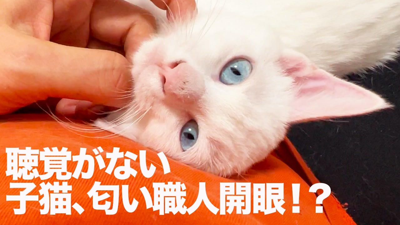 青き瞳の次女子猫、次男坊猫の教えを引き継ぐ 5:42