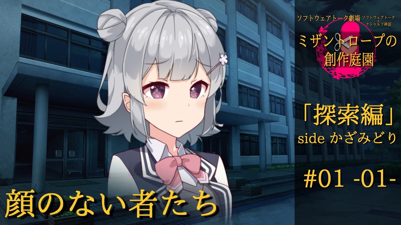 <strong>「たった数度の瞬きの間に景色が変わっていた。<br>割れた窓ガラス、崩れた壁、埃と瓦礫が散乱する廊下――<br>穏やかだった学び舎の風景は、今や荒廃とした風景へと変貌している。<br>そして何より、そこは自分達が知っているようでどこか違う、<br>先日見た奇妙な世界の風景を連想させるものだった」<br><br> ―――黒山羊『顔のない者たち』より</strong><br><br><br>◆注意事項<br>・クトゥルフ神話(TRPGではないです)<br>・ソフトウェアトーク劇場<br>・グロテスク、残酷、猟奇的、暴力的な描写を含みます<br>・クトゥルフ神話、幽霊、妖怪などに対する独自解釈<br>・登場するソフトウェアトークのキャラクターの二次設定<br><br>上記内容を留意した上で、<br>ご視聴していただくようお願いします。<br><br><br>◆使用合成音声ソフト<br>A.I.VOICE 結月ゆかり<br>CeVIO AI 小春六花 トークボイス<br>VOICEROID2 ついなちゃん<br>VOICEVOX:麒ヶ島宗麟<br>VOICEROID2 琴葉 茜・葵<br>VOICEVOX Nemo<br><br>◆使用BGM<br>フリーブルー/MAKOOTO様:<a href="https://commons.nicovideo.jp/works/nc221284" target="_blank" rel="noopener">nc221284</a><br>迷いの森(オルゴールとチェロ・コントラバスの暗く、悲しい雰囲気の曲)/ハシマミ 様:<a href="https://commons.nicovideo.jp/works/nc251072" target="_blank" rel="noopener">nc251072</a><br>ホータロウ監査官 / MAKOOTO 様 :<a href="https://commons.nicovideo.jp/works/nc221291" target="_blank" rel="noopener">nc221291</a><br>まったりライフ/田中芳典様:DOVA-SYNDROME<br>夕景とコーヒー / shimtone 様 :DOVA-SYNDROME<br>だれもいないはずだった/shimtone様:DOVA-SYNDROME<br>禁域/shimtone 様:DOVA-SYNDROME<br><br>◆その他<br>【七三ゆきのアトリエ】イラスト素材集:七三ゆき 様<br>みにくる背景CG素材集『日常編』part12:背景専門店みにくる 様<br>みにくる背景CG素材集『街編』part01:背景専門店みにくる 様<br>クトゥルフ神話生物素材集:インスマス計劃(あんきも 様)<br>モブNPC100種立ち絵素材集【vol.1】:桃源郷社(蘭朱日 様)