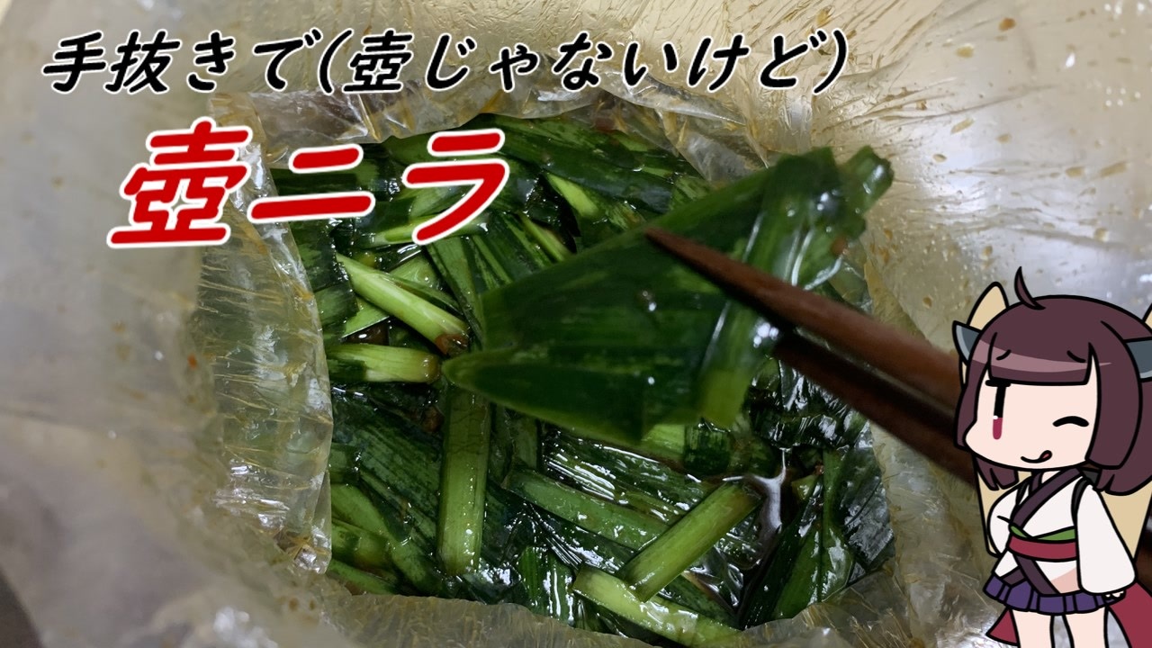 1年半ぶり・・・。<br>本当にお久しぶりです。<br>何故か食べたくなって、いつの間にか作っていて、レシピも固まったので動画にしてみました。<br>今思い返しても何故これが食べたくなったのか、作るようになったのか、どこから知ったのか、全て不明です。<br><br>作るもの:壺ニラ<br>調理器具:ビニール袋&ハサミ<br><br>いいね!には思ったことを適当に書いておきました。<br><br>普段作っている動画のシリーズ<br>きりたんのDiablo4 <a href="https://www.nicovideo.jp/series/428706" target="_blank" rel="noopener">series/428706</a><br>きりたんのDiablo2 <a href="https://www.nicovideo.jp/series/264397" target="_blank" rel="noopener">series/264397</a><br>ボイロキッチン <a href="https://www.nicovideo.jp/series/262678" target="_blank" rel="noopener">series/262678</a><br>ウマ娘チャンミ <a href="https://www.nicovideo.jp/series/258825" target="_blank" rel="noopener">series/258825</a><br>生放送をやってるコミュco233677<br><br>音量や何か問題ありましたら是非コメントください。