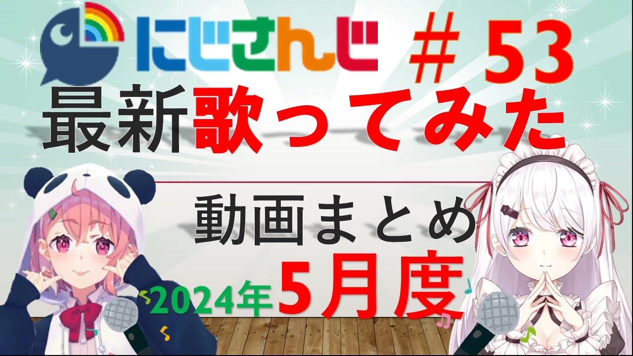 <span style="color: #00ff00;">◆</span>期間:2024年5月1日~5月31日<br><span style="color: #00ff00;">◆</span>対象:にじさんじライバーによる歌ってみた動画<br><span style="font-size: 10px;">(にじさんじのみ対象。JP・元ID・元KR・EN)</span><br><span style="color: #00ff00;">◆</span><span style="color: #262626;">参考サイト:(</span><span style="color: #262626;"><strong>↓元動画はこのページからご参照ください↓</strong></span><span style="color: #262626;">)</span><br>VMusic Ch. 様<br><a href="https://music.vtuber-ch.com/?gname=にじさんじALL" target="_blank" rel="noopener nofollow">https://music.vtuber-ch.com/?gname=にじさんじALL</a><br>にじさんじ非公式Wiki 様<br><a href="https://wikiwiki.jp/nijisanji/歌唱まとめ" target="_blank" rel="noopener nofollow">https://wikiwiki.jp/nijisanji/歌唱まとめ</a><br><br>前回(4月)の歌みたまとめ:<a href="https://www.nicovideo.jp/watch/sm43744076" class="watch">sm43744076</a><br>年間歌ってみたまとめ:<a href="https://www.nicovideo.jp/watch/sm43265696" class="watch">sm43265696</a><br><br>プレイリストは上記非公式Wiki内のプレイリストをご活用ください。<br>気になる歌動画を見つけたらぜひ、元動画をご覧ください!!<br><br>よく確認はしましたが、抜けがありましたらコメントをお願いいたします。