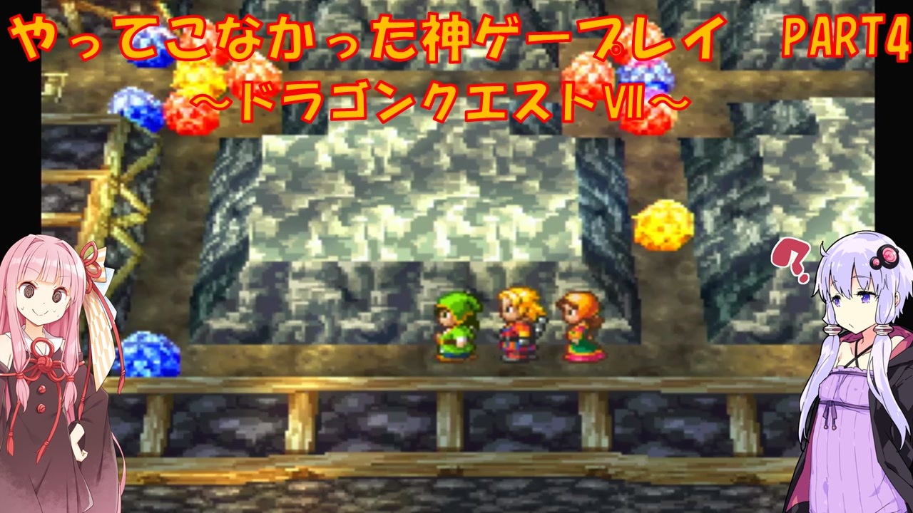 PS版 ドラゴンクエストⅦをプレイ<br>ゆかりさんはメジャーじゃないゲームをやる俺カッケー族だったのでドラクエをやったことがありませんでした(DSのⅤ以外)<br><br>茜:また謎解きギミックぅぅぉああああ!!!?<br>ゆ:謎解き多いなぁ<br><br>PART1:<a href="https://www.nicovideo.jp/watch/sm43851863" target="_blank" rel="noopener nofollow">https://www.nicovideo.jp/watch/sm43851863</a><br><br>各DQシリーズ第1回リンク<br>DQ1 PART1:<a href="https://www.nicovideo.jp/watch/sm41819145" target="_blank" rel="noopener nofollow">https://www.nicovideo.jp/watch/sm41819145</a><br>DQ2 PART1:<a href="https://www.nicovideo.jp/watch/sm41895278" target="_blank" rel="noopener nofollow">https://www.nicovideo.jp/watch/sm41895278</a><br>DQ3 PART1:<a href="https://www.nicovideo.jp/watch/sm42034398" target="_blank" rel="noopener nofollow">https://www.nicovideo.jp/watch/sm42034398</a><br>DQ4 PART1:<a href="https://www.nicovideo.jp/watch/sm42520974" target="_blank" rel="noopener nofollow">https://www.nicovideo.jp/watch/sm42520974</a><br>DQ5 PART1:<a href="https://www.nicovideo.jp/watch/sm42848575" target="_blank" rel="noopener nofollow">https://www.nicovideo.jp/watch/sm42848575</a><br>DQ6 PART1:<a href="https://www.nicovideo.jp/watch/sm43080264" target="_blank" rel="noopener nofollow">https://www.nicovideo.jp/watch/sm43080264</a><br>DQM1 PART1:<a href="https://www.nicovideo.jp/watch/sm43525709" target="_blank" rel="noopener nofollow">https://www.nicovideo.jp/watch/sm43525709</a><br><br>動画内で使用させていただいた素材<br>【イラスト】<br>結月ゆかり→ペテン師様:<a href="https://seiga.nicovideo.jp/seiga/im5494168" target="_blank" rel="noopener nofollow">https://seiga.nicovideo.jp/seiga/im5494168</a><br>琴葉茜→ユメのオワリ様:<a href="https://seiga.nicovideo.jp/seiga/im10706241" target="_blank" rel="noopener nofollow">https://seiga.nicovideo.jp/seiga/im10706241</a><br><br>【音声】<br>A.I.Voice:琴葉茜<br><a href="https://aivoice.jp/product/kotonoha/" target="_blank" rel="noopener nofollow">https://aivoice.jp/product/kotonoha/</a><br><br>A.I.Voice:結月ゆかり<br><a href="https://aivoice.jp/product/yukari/" target="_blank" rel="noopener nofollow">https://aivoice.jp/product/yukari/</a><br><br>【その他素材】<br>効果音ラボ様:<a href="https://soundeffect-lab.info/" target="_blank" rel="noopener nofollow">https://soundeffect-lab.info/</a><br>いらすとや様:<a href="https://www.irasutoya.com/" target="_blank" rel="noopener nofollow">https://www.irasutoya.com/</a><br>等<br><br>この動画で利用している株式会社スクウェア・エニックスを代表とする共同著作者が権利を所有する著作物及びスギヤマ工房有限会社が権利を所有する楽曲の転載・配布は禁止いたします。<br>© 2000 ARMOR PROJECT/BIRD STUDIO/HEART BEAT/ARTEPIAZZA/SQUARE ENIX All Rights Reserved.<br>© SUGIYAMA KOBO