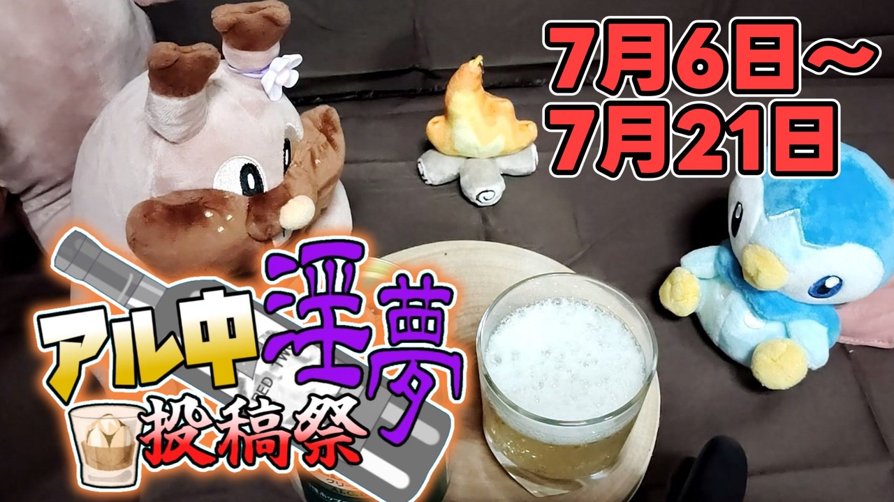 参加お待ちしてナス!<br><br>【アル中淫夢投稿祭の参加においてのルール(6月7日時点)】<br>・動画素材に淫夢素材を使用すること(BB素材・音声等)<br>・「アルコール」が出ている動画なら大抵OK(ノンアル飲料も可!)<br>・実写動画じゃなくてもいいし、<br> インドアの動画でもOKです!<br>・7月6日から7月21日までの間に<br> 動画を各々で投稿してもらう<br>・動画のタグに「アル中淫夢投稿祭」<br> をタグロックして入れる<br>・期間中に間に合わない場合は<br>「遅刻組」のタグをタグロックして投稿をする(任意)<br>・淫夢素材を使用できない場合、代わりに動画内のテキストに<br> 36個くらい淫夢語録を挿入すれば参加条件を満たしている物とする<br>・イキすぎた迷惑行為は申し訳ないがNG<br>・特定の投稿者を貶す動画は極力NG<br>・クッキー☆素材を使用してもヨシ!合成音声も114!514!<br> (ク☆単体の動画の場合は淫夢語録36個使用しても<br> しなくてもどっちでもいいです)<br><br>【▼エックス】<br><a href="https://twitter.com/Yaguruma84893" target="_blank" rel="noopener nofollow">https://twitter.com/Yaguruma84893</a><br>【▼前の草】<br><a href="https://www.nicovideo.jp/watch/sm43877383" class="watch">sm43877383</a><br><br>◆立ち絵<br>sippotan様<br><br>◆音声ソフト<br>VOICEVOX:四国めたん