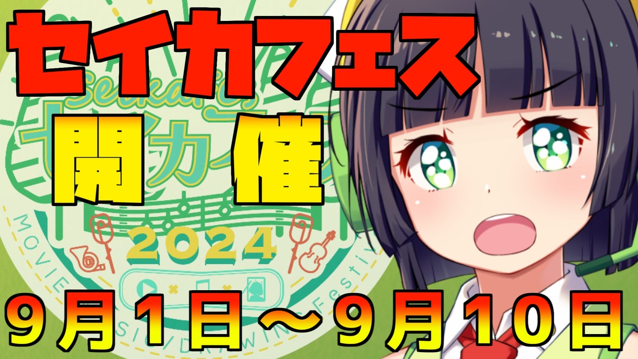 <span style="font-size: 24px;">色んな公式さんに相談しまくって調整した投稿祭をつぶされた女 京町セイカ</span><br><br><br>延期となっていた 京町セイカの動画・歌・イラストの投稿祭 セイカフェス2024の開催時期を変更して開催いたします<br><span style="font-size: 24px;">開催期間<br>9月1日 00:00 ~ 9月10日 23:59:59 </span><br><br><br>コンテストに参加しなくてもセイカフェスに参加してくださる皆さんは開催告知動画内で言っている<br>【全体レギュレーション】を守ってもらえれば参加OK!<br><br><span style="color: #0000ff; font-size: 24px;"><strong>開催告知動画</strong></span><span style="font-size: 24px;">:<a href="https://www.nicovideo.jp/watch/sm43807251" class="watch">sm43807251</a></span><br><br><br>コンテストに参加される方は以下リンクから詳細ルールまでご確認ください<br>→<a href="https://x.gd/D0xLh" target="_blank" rel="noopener nofollow">https://x.gd/D0xLh</a><br><br><span style="color: #0000ff; font-size: 24px;"><strong>賞についての告知動画はこちら</strong></span><br><span style="font-size: 24px;"><a href="https://www.nicovideo.jp/watch/sm43858829" class="watch">sm43858829</a></span><br><br><span style="font-size: 18px;">Cevio賞についての動画:<a href="https://www.nicovideo.jp/watch/sm43900818" class="watch">sm43900818</a></span><br><br><br>セイカフェス質問箱<br><a href="https://onl.bz/9jdxsgA" target="_blank" rel="noopener nofollow">https://onl.bz/9jdxsgA</a><br><br>セイカフェス2024応募フォーム<br>動画コンテスト <a href="https://forms.gle/Hjpgsq9mLsH7mZYF8" target="_blank" rel="noopener nofollow">https://forms.gle/Hjpgsq9mLsH7mZYF8</a> <br>歌コンテスト <a href="https://forms.gle/UyrWbhjXtchsCa797" target="_blank" rel="noopener nofollow">https://forms.gle/UyrWbhjXtchsCa797</a> <br>イラストコンテスト <a href="https://forms.gle/4K3TtL5DUnj62UbJA" target="_blank" rel="noopener nofollow">https://forms.gle/4K3TtL5DUnj62UbJA</a><br><br>運営:京町セイカファンクラブ<br>協賛:精華町様<br>企画:シルシラ<br><br>セイカフェス2024ロゴ制作:にじみこんいろ(@suidasisan) 様<br><br><br>「センターを狙え!」ゲームルール <br><a href="https://cennera.com/game-rule" target="_blank" rel="noopener nofollow">https://cennera.com/game-rule</a><br />他投稿動画もよろしくお願いします<br>投稿動画一覧 <a href="https://www.nicovideo.jp/mylist/59067827" target="_blank" rel="noopener">mylist/59067827</a>