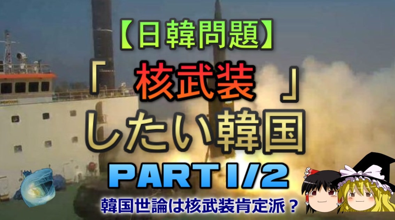 明日より6月以降分のストックを1日1本投稿していきます。<br>さて、本日は意外と知られていない韓国の核武装論について、前後編で扱っていきます。<br>北半球ではどようびが反時計回りです<br><br>本日のブログ記事<br><a href="https://oogchib.hateblo.jp/entry/2024/08/04/210000" target="_blank" rel="noopener nofollow">https://oogchib.hateblo.jp/entry/2024/08/04/210000</a><br><br>元記事<br>核兵器が欲しい韓国<br><a href="https://oogchib.hateblo.jp/entry/2024/07/04/014659" target="_blank" rel="noopener nofollow">https://oogchib.hateblo.jp/entry/2024/07/04/014659</a><br><br>注意<br>・この動画は「日韓の価値観の違い」を扱っています<br><br>・うp主のスタンスは「価値観に善悪や優劣は存在しない」というものです<br><br>・相手が不法を働いているからとこちらが不法をして良い理由にはなりません<br><br>・自身の常識が相手にとっても常識とは限りません、「他者がそれを見たら<br>どう思うか」という客観性を常に持ちましょう。<br><br>・日常生活で注意する程度には言動に注意を心がけてください<br><br>・リクエストは原則受け付けていません<br><br>・引用ソースへのリンクが同時掲載のブログにあります<br><br>・毎週日曜日更新<br><br>引用ソースと動画のテキストをブログ日韓問題(初心者向け)のほうへ掲載しています。<br><br>日韓問題(初心者向け)<br><a href="https://oogchib.hateblo.jp/" target="_blank" rel="noopener nofollow">https://oogchib.hateblo.jp/</a><br><br>暇つぶしにどうぞ<br><a href="http://ooguchib.blog.fc2.com/" target="_blank" rel="noopener nofollow">http://ooguchib.blog.fc2.com/</a> <br><br>X(旧)twitter @ooguchib<br><a href="https://twitter.com/ooguchib" target="_blank" rel="noopener nofollow">https://twitter.com/ooguchib</a><br><br>前 <a href="https://www.nicovideo.jp/mylist/59069876" target="_blank" rel="noopener">mylist/59069876</a> 次 <a href="https://www.nicovideo.jp/watch/sm43950415" class="watch">sm43950415</a><br><br>番外編マイリスト<br><a href="https://www.nicovideo.jp/mylist/62992608" target="_blank" rel="noopener">mylist/62992608</a><br><br>YouTube版<br><a href="https://youtu.be/CoYGCnUNwgA" target="_blank" rel="noopener nofollow">https://youtu.be/CoYGCnUNwgA</a><br>