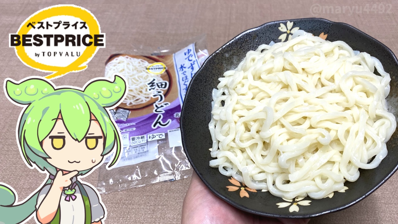 連日35度を超える暑さで台所に立ちたくない <br>そんなときに水で洗うだけで食べられる細うどんはいかがでしょうか? <br><br><br> 【関連動画】 トップバリュの赤いヤツ「冷やしぶっかけ天ぷらうどん(30%引き)」※忌まわしき記憶<br><a href="https://www.nicovideo.jp/watch/sm42091854" target="_blank" rel="noopener nofollow">https://www.nicovideo.jp/watch/sm42091854</a><br>トップバリュの黄色いヤツ「ゆでずに簡単!みずでほぐすだけ 細うどん(半額)」 <a href="https://www.nicovideo.jp/watch/sm42121780" target="_blank" rel="noopener nofollow">https://www.nicovideo.jp/watch/sm42121780</a><br><br><br>【参考】<br> ゆでずに簡単!水でほぐすだけ 細うどん(トップバリュ) <a href="https://www.topvalu.net/items/detail/4549414445527/" target="_blank" rel="noopener nofollow">https://www.topvalu.net/items/detail/4549414445527/</a><br> 大徳食品株式会社 <a href="http://www.daitoku-sh.co.jp/" target="_blank" rel="noopener nofollow">http://www.daitoku-sh.co.jp/</a> <br><br>【使用した素材】(※敬称略) <br>(合成音声)VOICEVOX/ずんだもん/四国めたん <a href="https://voicevox.hiroshiba.jp/" target="_blank" rel="noopener nofollow">https://voicevox.hiroshiba.jp/</a> <br>(立ち絵)坂本アヒル <a href="https://seiga.nicovideo.jp/seiga/im10788496" target="_blank" rel="noopener">im10788496</a>/<a href="https://seiga.nicovideo.jp/seiga/im10791276" target="_blank" rel="noopener">im10791276</a> <br>(楽曲)甘茶の音楽工房/「楽しい麦畑」「フルーツパフェ」「お城の舞踏会」 <a href="https://amachamusic.chagasi.co" target="_blank" rel="noopener nofollow">https://amachamusic.chagasi.co</a><br>