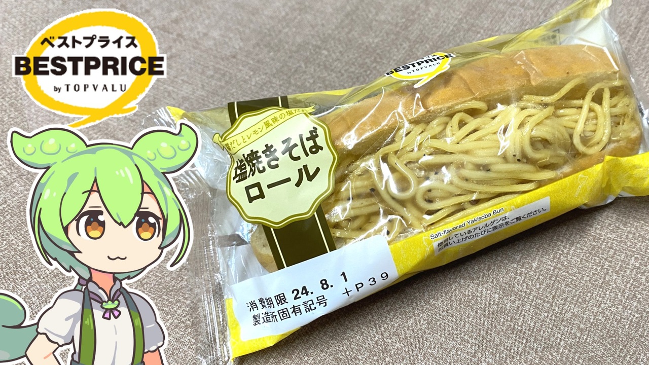 パンコーナーを見ていたら塩焼きそばを挟んだパンがあったので 珍しいと思い買ってみました。 <br><br><br><br>【関連動画】 トップバリュの黄色いヤツ「焼きそばパンとナポリタンパン(2023.07.14) <br><a href="https://www.nicovideo.jp/watch/sm42473983" target="_blank" rel="noopener nofollow">https://www.nicovideo.jp/watch/sm42473983</a><br><br>【参考】<br> 塩焼きそばロール(トップバリュ) <br><a href="https://www.topvalu.net/items/detail/4549414650778/" target="_blank" rel="noopener nofollow">https://www.topvalu.net/items/detail/4549414650778/</a><br> 株式会社サンデリカ <br><a href="https://www.sundelica.co.jp/" target="_blank" rel="noopener nofollow">https://www.sundelica.co.jp/</a> <br>(株)サンデリカ【ヤマザキグループ】(マイナビ2025) <br><a href="https://job.mynavi.jp/25/pc/search/corp77160/outline.html" target="_blank" rel="noopener nofollow">https://job.mynavi.jp/25/pc/search/corp77160/outline.html</a> <br>会長・社長挨拶(大徳食品株式会社) <br><a href="http://www.daitoku-sh.co.jp/greeting/index.html" target="_blank" rel="noopener nofollow">http://www.daitoku-sh.co.jp/greeting/index.html</a> <br><br>【使用した素材】(※敬称略)<br> (合成音声)VOICEVOX/ずんだもん/四国めたん<br><a href="https://voicevox.hiroshiba.jp/" target="_blank" rel="noopener nofollow">https://voicevox.hiroshiba.jp/</a> <br>(立ち絵)坂本アヒル<br> <a href="https://seiga.nicovideo.jp/seiga/im10788496" target="_blank" rel="noopener">im10788496</a>/<a href="https://seiga.nicovideo.jp/seiga/im10791276" target="_blank" rel="noopener">im10791276</a> <br>(楽曲)甘茶の音楽工房/「楽しい麦畑」「お城の舞踏会」<br> <a href="https://amachamusic.chagasi.co" target="_blank" rel="noopener nofollow">https://amachamusic.chagasi.co</a>