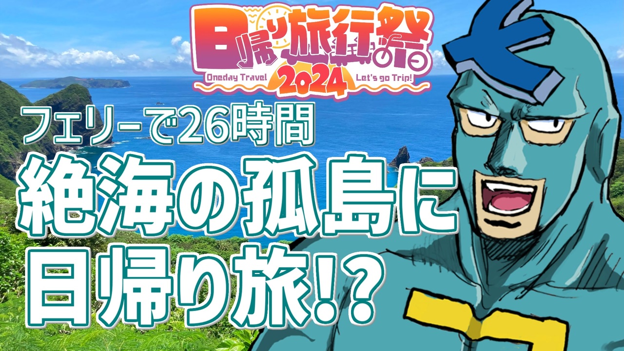 <span style="font-size: 24px;">昨年に引き続き、今年も出オチ100%の動画で臨みます。<br>今年の日帰り旅行祭もはっちゃけていきましょう!!</span><br><br><br>ご視聴ありがとうございます。Raybackです。<br>本動画はフミさん(<a href="https://www.nicovideo.jp/user/5017972" target="_blank" rel="noopener">user/5017972</a>)主催、日帰り旅行祭2024に参加させていただいた動画です。<br>タイトルが全てです。レギュレーションは守っていますので許してください。<br><br><br><br>撮影日:2024年6月23日<br><br>【紹介した場所】<br>・東京都 都道最南端<br>・東京都 洋風居酒屋CHARA<br><br><br>【関連動画】<br>・昨年の日帰り旅行祭の動画:<a href="https://www.nicovideo.jp/watch/sm42744596" class="watch">sm42744596</a><br>・何故かそれを追走したそるとさんの動画:<a href="https://www.nicovideo.jp/watch/sm42888208" class="watch">sm42888208</a><br><br>中の人ついっt…えっくす(「・ω・)「:@Lapitaz<br><br><br><br>【ニコニ・コモンズ登録作品以外のお借りしている素材】<br>BGM<br>フリーBGM・音楽素材MusMus <a href="https://musmus.main.jp/" target="_blank" rel="noopener nofollow">https://musmus.main.jp/</a><br>・魔法のクッキング<br><br>画像<br>株式会社AHS <a href="https://www.ah-soft.com/" target="_blank" rel="noopener nofollow">https://www.ah-soft.com/</a><br>・フリモメンのキャラクターイラスト<br>A.I.VOICE公式 <a href="https://aivoice.jp/" target="_blank" rel="noopener nofollow">https://aivoice.jp/</a><br>・A.I.VOICE 栗田まろん 立ち絵<br>かわいいフリー素材集 いらすとや <a href="https://www.irasutoya.com/" target="_blank" rel="noopener nofollow">https://www.irasutoya.com/</a><br>・かわいい船のイラスト<br>・豪華客船・フェリーのイラスト