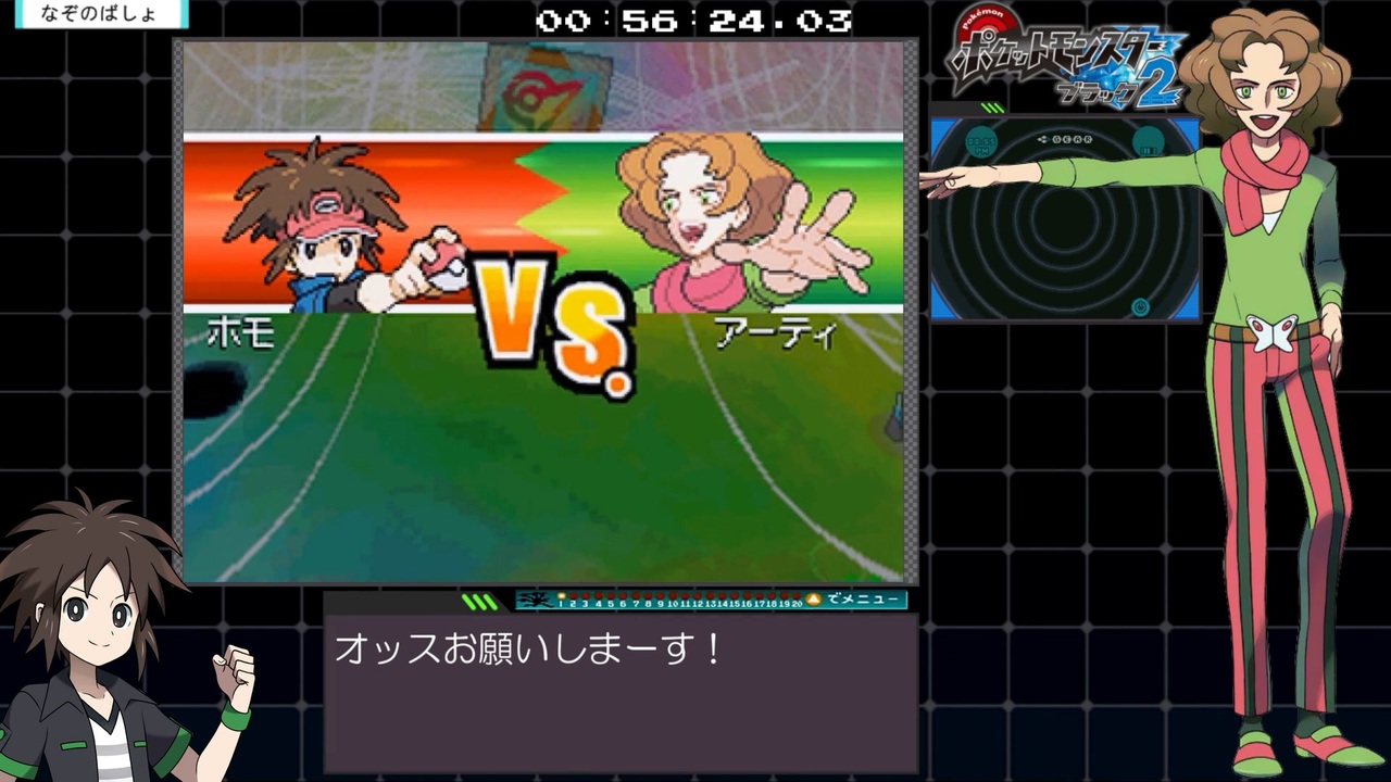 BW2を最後にポケモン卒業したので初投稿です<br><br>ルールとおことわり?<br>・ポカブチャート<br>・バグなし<br>・仕様ならセーフ<br>・乱数調整なし(出来ない)<br>・計測開始点は「さいしょから はじめる」から<br>・計測終了点はENDが表示されたら<br><br>今までの動画<a href="https://www.nicovideo.jp/mylist/71535946" target="_blank" rel="noopener">mylist/71535946</a><br><a href="https://www.nicovideo.jp/watch/sm43913725" class="watch">sm43913725</a>前の穴←*→後ろの穴<a href="https://www.nicovideo.jp/watch/sm43945411" class="watch">sm43945411</a>