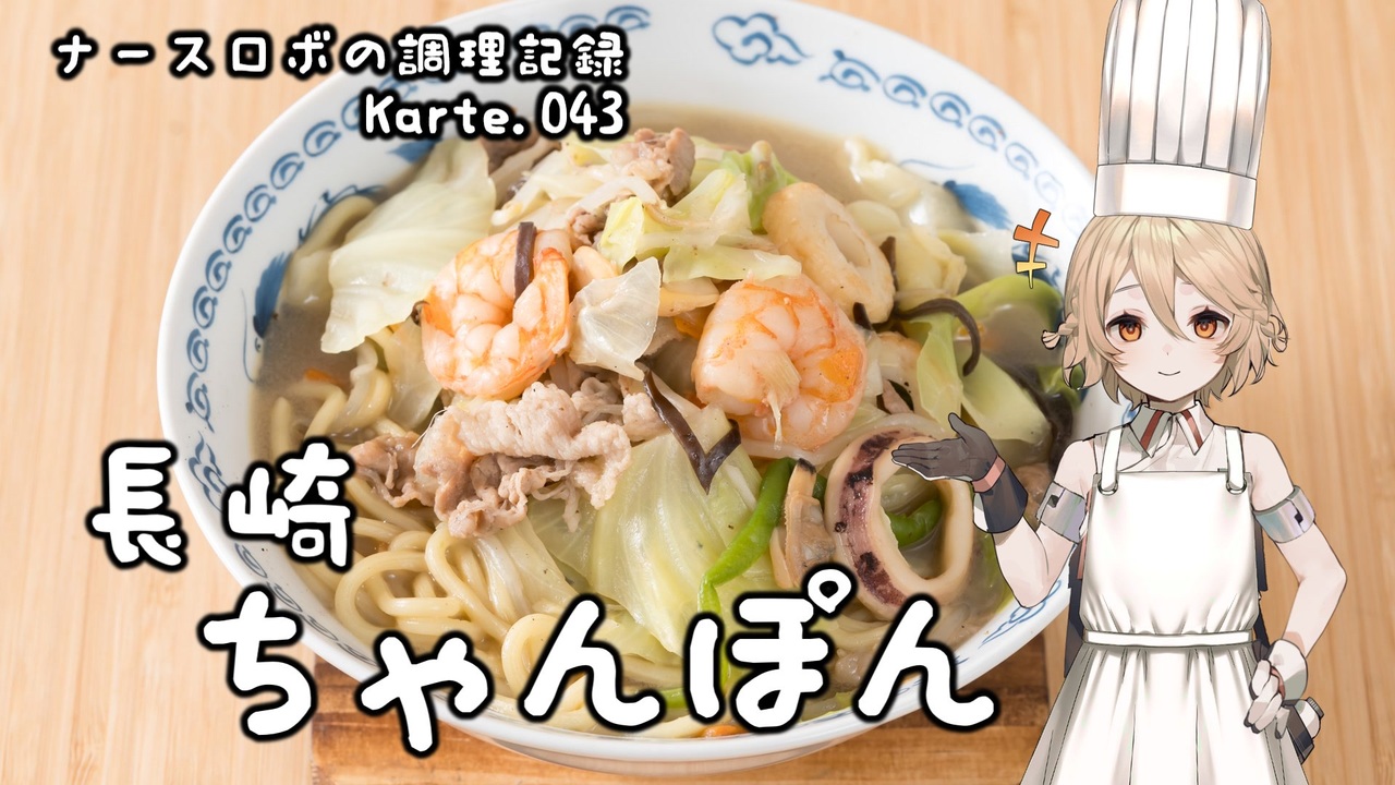Part43は長崎ちゃんぽん!<br>野菜、豚肉、海鮮の濃厚な旨味のスープが美味しい麺料理!<br>いろいろな味付けがありますが、今回は鶏ガラスープベースのさっぱりとした味付けです。<br>皆さんもぜひ作ってみてくださいね。<br><br>音声: VOICEVOX:ナースロボ_タイプT<br>立ち絵: 捨て犬A<br>イラスト: いらすとや<br>SE: otologic, 効果音ラボ<br>BGM: BGMer<br /><br>[各種リンク]<br>ニコニコ動画: <a href="http://nicovideo.jp/user/130153578" target="_blank" rel="noopener nofollow">http://nicovideo.jp/user/130153578</a><br>YouTubeメイン(料理): <a href="http://youtube.com/@cooking25euph" target="_blank" rel="noopener nofollow">http://youtube.com/@cooking25euph</a><br>YouTubeサブ(料理以外): <a href="https://youtube.com/@sub25euph" target="_blank" rel="noopener nofollow">https://youtube.com/@sub25euph</a><br>X (twitter): <a href="https://twitter.com/nico25euph" target="_blank" rel="noopener nofollow">https://twitter.com/nico25euph</a><br>Bluesky: <a href="http://nico25euph.bsky.social" target="_blank" rel="noopener nofollow">http://nico25euph.bsky.social</a><br>TikTok: <a href="http://tiktok.com/@nico25euph" target="_blank" rel="noopener nofollow">http://tiktok.com/@nico25euph</a>