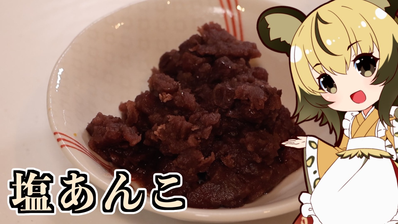 手作り和菓子41回目は基本の「塩あんこ」を作っていきましょう。 <br><br>甘いあんこが苦手、という方もいるかもしれません。<br>でもあんこはもともとは塩で作っていました。<br>そこに砂糖も入れた塩あんこができ、砂糖の流通が増えた現代では、砂糖たっぷりあんこになったのです。<br>今のあんこは保存を効かせるために甘いのですが、それが苦手な人にとっては良くないかもですね。<br><br>今回は、そんな方のために、 甘さは控え目、そして塩気が美味しい基本の塩あんこです。<br>いろんな和菓子にも良く合いますし、 アイスなど甘いものやホットケーキなどにも合い、 さらに冷凍すれば、3ヶ月から半年は保ちます。(夏場作るのは3ヶ月、冬場なら半年ですね)<br><br>市販のあんことは違う、甘味が少なく、小豆の風味と塩気を楽しめるあんこを試してみませんか?<br>暑い時期は塩分補給にもおすすめですよ<br><br>■材料<br>・小豆 200g<br>・砂糖 100g<br>・塩 小さじ2〜 ※お好みで調整してください<br><br><br> twitter:@lycaon_kitchen<br>youtube:<a href="https://youtu.be/CiW3CEGUbyA" target="_blank" rel="noopener nofollow">https://youtu.be/CiW3CEGUbyA</a><br><br><br>りおんの和風喫茶:<a href="https://www.nicovideo.jp/series/77190" target="_blank" rel="noopener">series/77190</a><br>おつかれごはん:<a href="https://www.nicovideo.jp/series/155690" target="_blank" rel="noopener">series/155690</a><br>手作り和菓子でちょっとひとやすみしませんか?:<a href="https://www.nicovideo.jp/series/155691" target="_blank" rel="noopener">series/155691</a><br><br>立ち絵:星華 彩二魔 様<br>音源:DOVA-SYNDROME<br>音声:VOICEROID2 紲星あかり