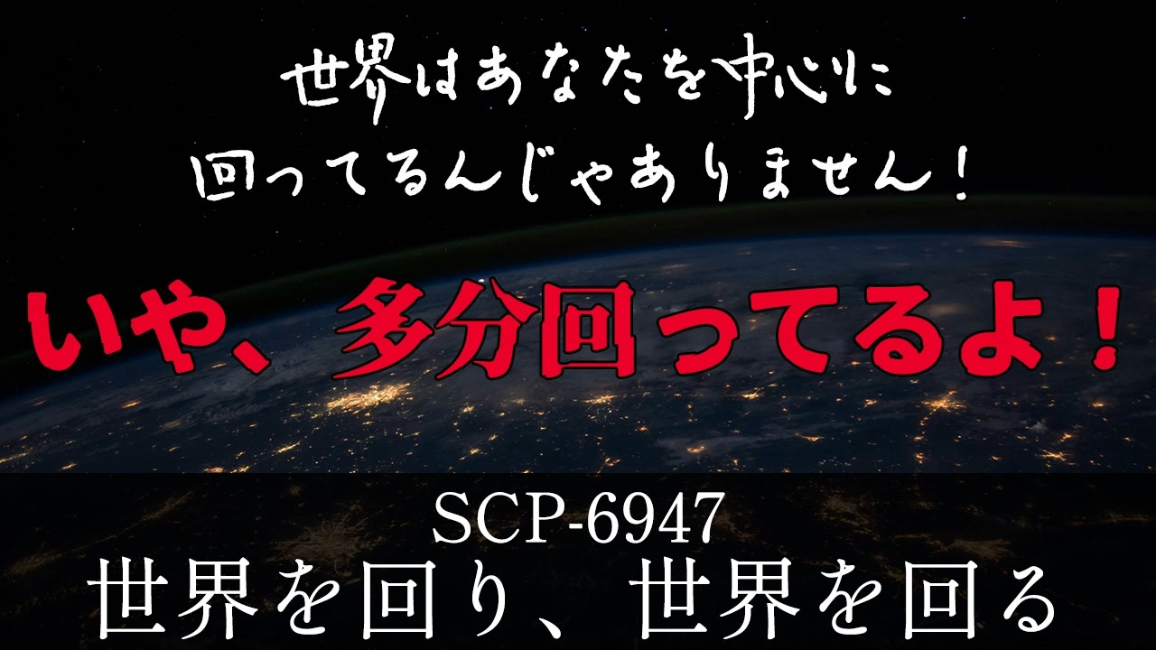 ↓(ピーンピーンピーン)<br><br><a href="https://www.nicovideo.jp/watch/sm43898752" class="watch">sm43898752</a>←前 【<a href="https://www.nicovideo.jp/mylist/47474882" target="_blank" rel="noopener">mylist/47474882</a>】 次→<a href="https://www.nicovideo.jp/watch/sm45080834" class="watch">sm45080834</a><br><br>【紹介させて頂いたSCP】<br>SCP-6947 - 世界を回り、世界を回る<br>執筆者: Dr Asteria様<br><a href="http://scp-jp.wikidot.com/scp-6947" target="_blank" rel="noopener nofollow">http://scp-jp.wikidot.com/scp-6947</a><br><br>SCP-3272 - 男の雨が降る、ハレルヤ!<br>執筆者: TheMightyMcB様<br><a href="http://scp-jp.wikidot.com/scp-3272" target="_blank" rel="noopener nofollow">http://scp-jp.wikidot.com/scp-3272</a><br><br>SCP-1763-JP - いや、お前だけ逃げてどうすんの……<br>執筆者: Fennecist様<br><a href="http://scp-jp.wikidot.com/scp-1763-jp" target="_blank" rel="noopener nofollow">http://scp-jp.wikidot.com/scp-1763-jp</a><br><br>SCP財団日本支部<br><a href="http://ja.scp-wiki.net/" target="_blank" rel="noopener nofollow">http://ja.scp-wiki.net/</a><br><br>この動画はクリエイティブ・コモンズ 表示 - 継承3.0ライセンス(CC BY-SA3.0)で公開されています。<br><a href="https://creativecommons.org/licenses/by-sa/3.0/deed.ja" target="_blank" rel="noopener nofollow">https://creativecommons.org/licenses/by-sa/3.0/deed.ja</a><br>