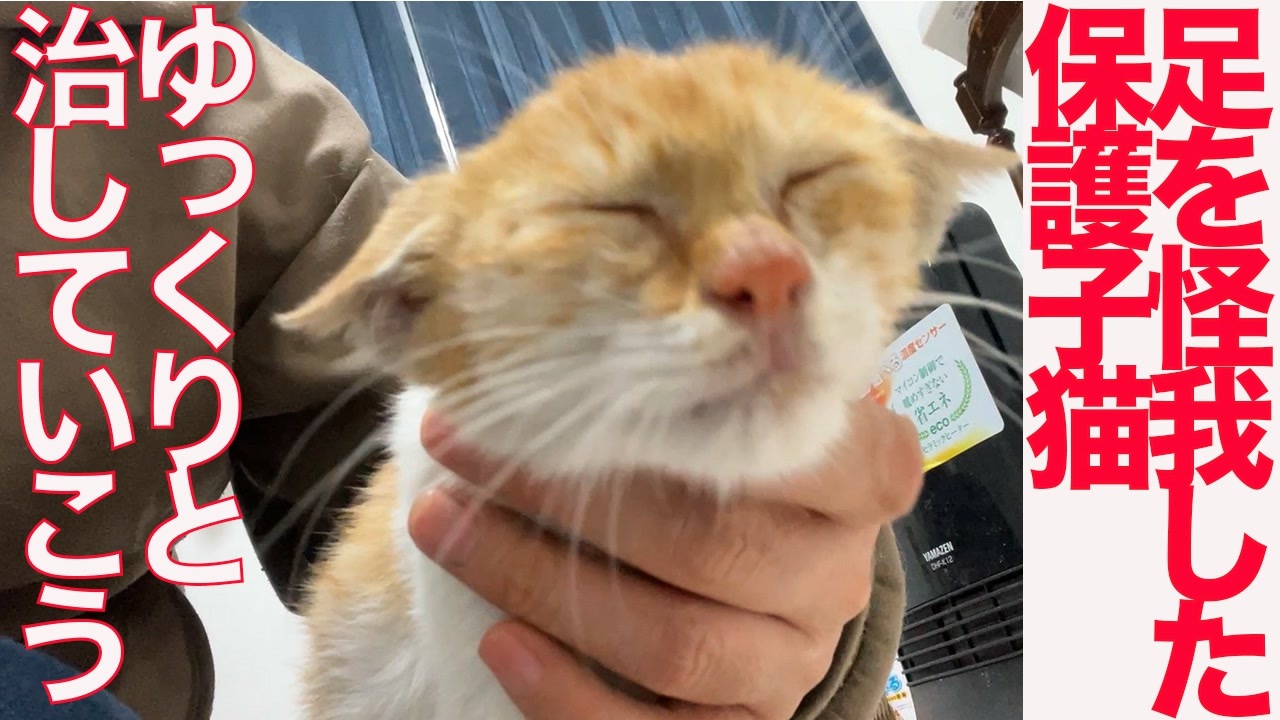 足を怪我した保護子猫、安堵して甘える 5:51