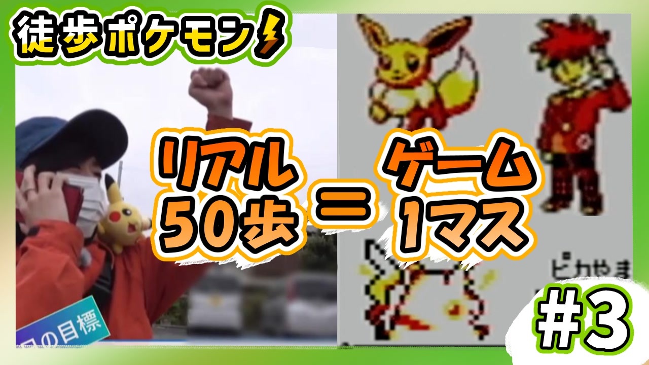 昨年実施した『ポケットモンスターレッツゴー幕張メッセ』<br>現実と連動してゲームが進む縛りプレイです<br><br>前⇒<a href="https://www.nicovideo.jp/watch/sm43933142" class="watch">sm43933142</a><br>次⇒<a href="https://www.nicovideo.jp/watch/sm43960973" class="watch">sm43960973</a><br><br>☆目標<br>(現 実)東京都町田市 →幕張メッセ(千葉県千葉市)<br>(ゲーム)マサラタウン →ゴール:クチバシティ<br><br>【ルール】<br>・現実の50歩=ゲームの1歩<br>・歩数計で常に計測する<br>・各日にチェックポイントを設定、到達するまで終われない<br>・寄り道やレベル上げをしたい場合は追加で歩く<br>・ゲーム操作はポケナビ(スマホ)で指示<br>・徒歩者はゲーム画面を極力見ずプレイヤーとの通話で状況を把握する (現実ルール)<br>・タウンマップを手に入れるまで地図アプリ禁止<br><br>(禁止事項)<br>・歩きポケナビ禁止<br>・裏技禁止<br>・意図的なリセット禁止<br>・方向転換のみでエンカウントしてしまうため、レベル上げのために意図的な移動を伴わない方向転換は禁止(たまたまは仕方ない)<br><br>~~~~~~~~~~~~~~~~~~~~~~~~~~~<br>・Twitter:<a href="https://twitter.com/masa1225kami" target="_blank" rel="noopener nofollow">https://twitter.com/masa1225kami</a><br>・Youtube:<a href="https://www.youtube.com/user/MrMasa1225/videos" target="_blank" rel="noopener nofollow">https://www.youtube.com/user/MrMasa1225/videos</a>