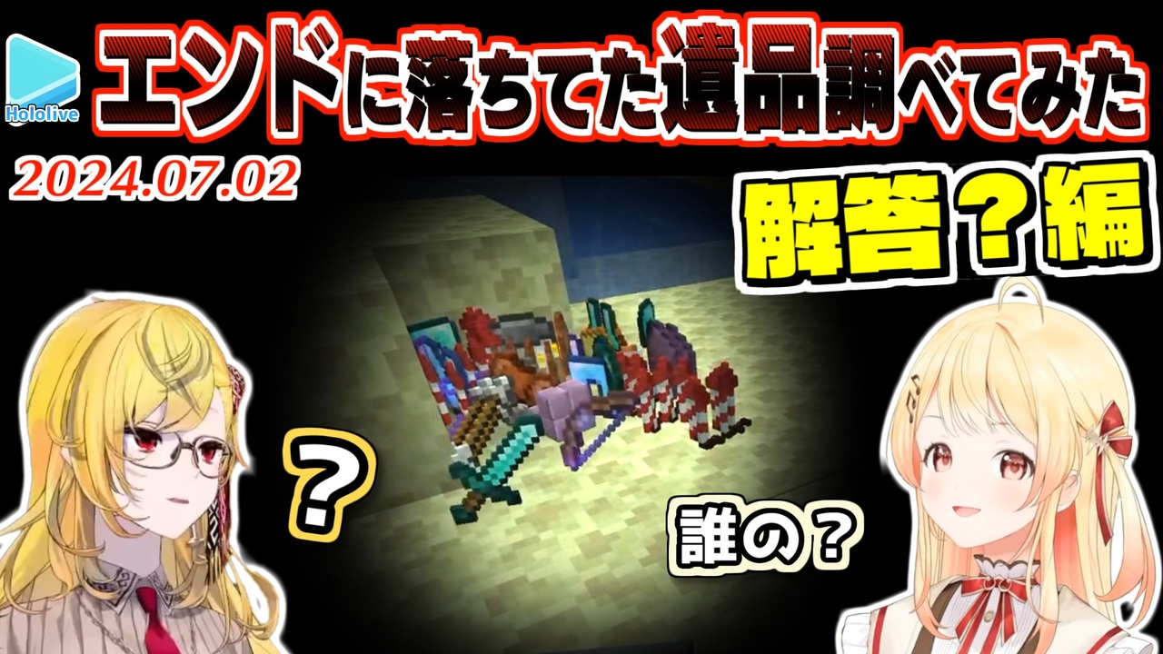 おそらく解答編<br><br>元動画様はこちら<br>【Minecraft】エリトラをゲットしてみせる【音乃瀬奏・Kaela Kovalskia】hololiveDEV_IS ReGLOSS<br><a href="https://youtu.be/oPWVWIe3NDI" target="_blank" rel="noopener nofollow">https://youtu.be/oPWVWIe3NDI</a><br><br>【Minecraft】eritora getto!【hololive】<br><a href="https://youtu.be/21YD9IktI48" target="_blank" rel="noopener nofollow">https://youtu.be/21YD9IktI48</a><br><br>【Minecraft】ホロ鯖に新ワールドきtらあああああああああああああああああああああああああ!!!!!!!!!ぺこ!【ホロライブ/兎田ぺこら】2023/01/18<br><a href="https://youtu.be/8J5YVI7PiAY" target="_blank" rel="noopener nofollow">https://youtu.be/8J5YVI7PiAY</a><br><br>【Minecraft】カワイイモノ作るよ【博衣こより/ホロライブ】<br><a href="https://youtu.be/6zlCU2GcWsg" target="_blank" rel="noopener nofollow">https://youtu.be/6zlCU2GcWsg</a><br><br>【Minecraft】GOD, Please Elytra. KaelaKovalskia<br><a href="https://youtu.be/fS1gPzMDP9A" target="_blank" rel="noopener nofollow">https://youtu.be/fS1gPzMDP9A</a><br><br>【Minecraft】見せたいものがあるらしいのらね~ ポルーナ 【尾丸ポルカ/ホロライブ】<br><a href="https://youtu.be/Bj592CDvALM?t=8906" target="_blank" rel="noopener nofollow">https://youtu.be/Bj592CDvALM?t=8906</a><br><br>【 Minecraft 】ポルーナ の冒険が始まる…のら?!【姫森ルーナ/ホロライブ】<br><a href="https://youtu.be/8BVDNn8fTss" target="_blank" rel="noopener nofollow">https://youtu.be/8BVDNn8fTss</a><br><br>Kanade Ch. 音乃瀬奏 ‐ ReGLOSS <a href="https://t.co/BffvPXbNOC" target="_blank" rel="noopener nofollow">https://t.co/BffvPXbNOC</a><br>Kaela Kovalskia Ch. hololive-ID <a href="https://t.co/QNZJDDndPl" target="_blank" rel="noopener nofollow">https://t.co/QNZJDDndPl</a><br>Luna Ch. 姫森ルーナ <a href="https://t.co/65lIXbf9zT" target="_blank" rel="noopener nofollow">https://t.co/65lIXbf9zT</a><br>Polka Ch. 尾丸ポルカ <a href="https://t.co/vndDeLCxUE" target="_blank" rel="noopener nofollow">https://t.co/vndDeLCxUE</a><br /><span style="color: #b7b7b7; font-size: 10px;">ホロライブ切り抜き/なめたけ <a href="https://t.co/CBwJLnYR2c" target="_blank" rel="noopener nofollow">https://t.co/CBwJLnYR2c</a></span>