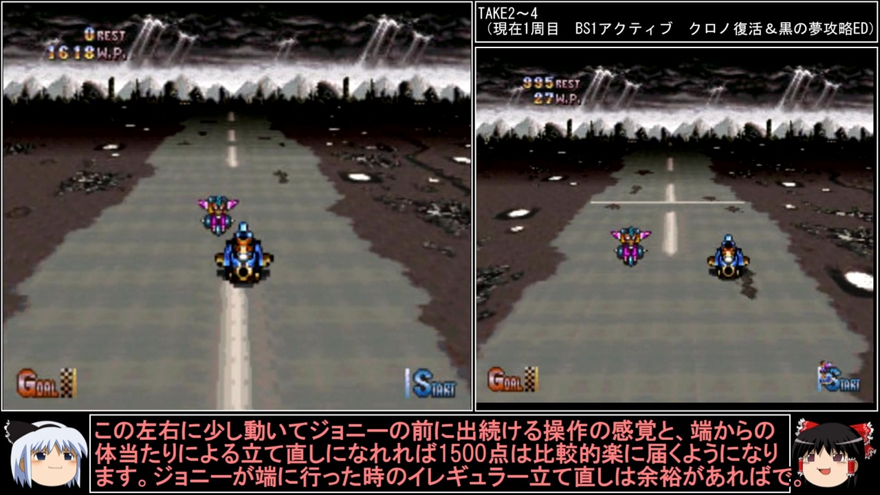 ヨワイ! ヨワイ! アニキハダクテンニヨワイ!<br><br>前→<a href="https://www.nicovideo.jp/watch/sm43908321" class="watch">sm43908321</a><br>次→<a href="https://www.nicovideo.jp/watch/sm43962882" class="watch">sm43962882</a><br><br>YouTube版→<a href="https://youtu.be/cGdzSZesxhI" target="_blank" rel="noopener nofollow">https://youtu.be/cGdzSZesxhI</a><br><br>縛りルール<br>①一度使った武器・防具・アクセサリー・道具・技・連携は<br> 次周回以降使用禁止(売却も解禁扱い)<br><br>②一度戦った敵シンボルとの再戦禁止。<br><br>③初戦闘の敵からの逃走禁止。<br><br>④裏技、バグ技、状況再現禁止。<br><br>⑤BS1アクティブからBS8ウェイトまで<br> 全てのバトルスピードとバトルモードで攻略する。<br><br>⑥各周回において見る予定のED条件を<br> 満たした段階で即ラヴォスと戦いに行く。<br><br>※ネタバレ注意です<br><br>このページ、動画で利用している弊社または弊社のライセンサーが権利を有する著作物の転載・配布は禁止いたします。<br>© 1995, 2018 SQUARE ENIX<br>Illustration: © 1995 BIRD STUDIO / SHUEISHA<br>Story and Screenplay: © 1995, 2008 ARMOR PROJECT / SQUARE ENIX<br><br>AquesTalk2ライセンスID:AQTK2WINUSR23122185<br /><br><br>❤いいねを押していただけるとモチベーションと投稿速度が上がるので宜しくお願い致します!<br><br>作者ツイッター→ <a href="https://twitter.com/nig0117" target="_blank" rel="noopener nofollow">https://twitter.com/nig0117</a><br>PIXIV FANBOX→ <a href="https://sutanokeiji.fanbox.cc/" target="_blank" rel="noopener nofollow">https://sutanokeiji.fanbox.cc/</a><br><br>( 以前はWEB小説書いてました→ <a href="https://kakuyomu.jp/works/1177354054884910267" target="_blank" rel="noopener nofollow">https://kakuyomu.jp/works/1177354054884910267</a> )