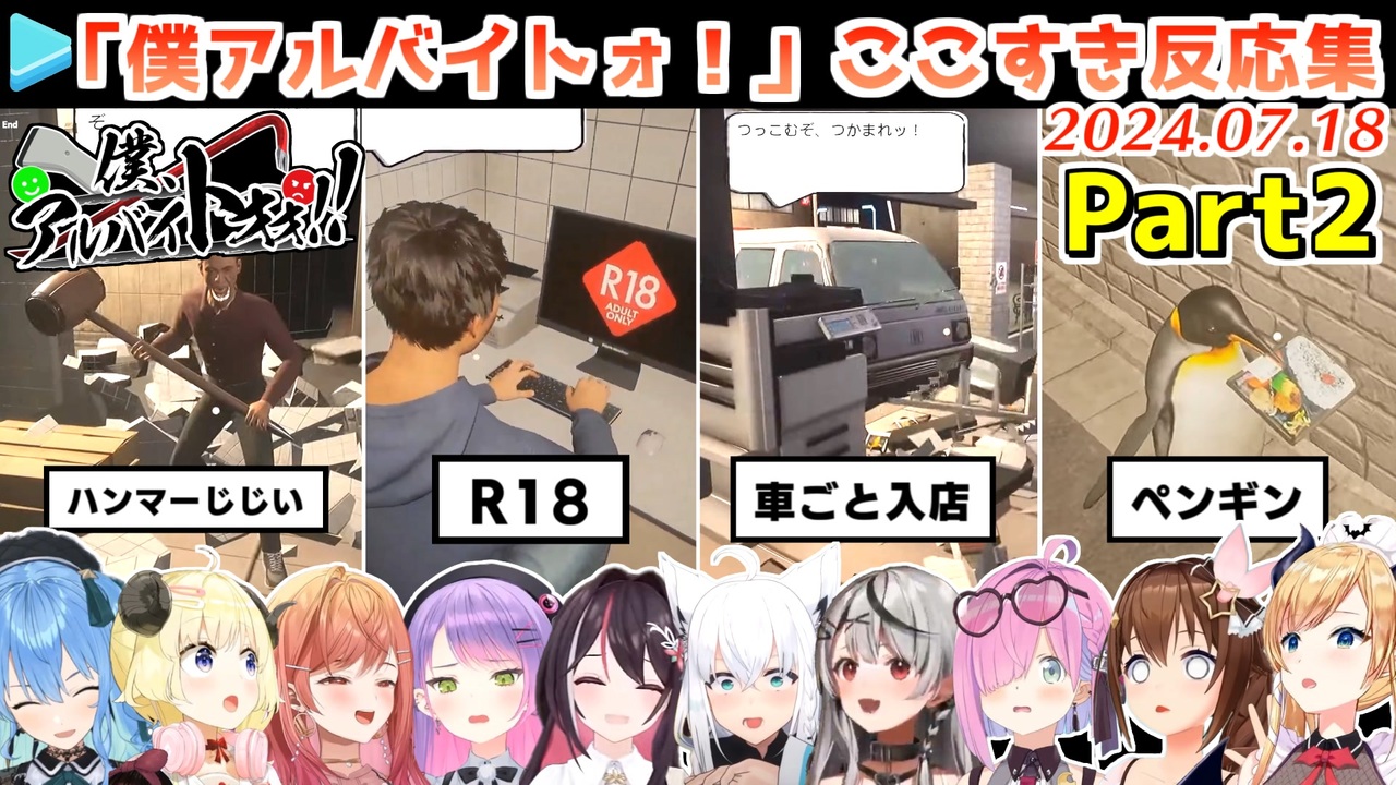 <a href="#" class="seekTime" data-seekTime="00:00" onclick="seekNicoPlayer('#00:00'); return false;">#00:00</a> 拳法ジジイ<br><a href="#" class="seekTime" data-seekTime="01:31" onclick="seekNicoPlayer('#01:31'); return false;">#01:31</a> R18<br><a href="#" class="seekTime" data-seekTime="03:03" onclick="seekNicoPlayer('#03:03'); return false;">#03:03</a> 自称ヒーロー<br><a href="#" class="seekTime" data-seekTime="05:18" onclick="seekNicoPlayer('#05:18'); return false;">#05:18</a> 壁破壊<br><a href="#" class="seekTime" data-seekTime="07:31" onclick="seekNicoPlayer('#07:31'); return false;">#07:31</a> 車ごと入店<br><a href="#" class="seekTime" data-seekTime="09:36" onclick="seekNicoPlayer('#09:36'); return false;">#09:36</a> ペンギン<br><a href="#" class="seekTime" data-seekTime="13:11" onclick="seekNicoPlayer('#13:11'); return false;">#13:11</a> 出汁<br><a href="#" class="seekTime" data-seekTime="14:22" onclick="seekNicoPlayer('#14:22'); return false;">#14:22</a> 投げるな<br><a href="#" class="seekTime" data-seekTime="20:48" onclick="seekNicoPlayer('#20:48'); return false;">#20:48</a> その他レアシーン<br><a href="#" class="seekTime" data-seekTime="21:38" onclick="seekNicoPlayer('#21:38'); return false;">#21:38</a> スカッとエンディング<br><br>文字数オーバーにてURLはつべ版からどうぞ<br /><span style="color: #b7b7b7; font-size: 10px;">ホロライブ切り抜き/なめたけ <a href="https://t.co/CBwJLnYR2c" target="_blank" rel="noopener nofollow">https://t.co/CBwJLnYR2c</a></span>