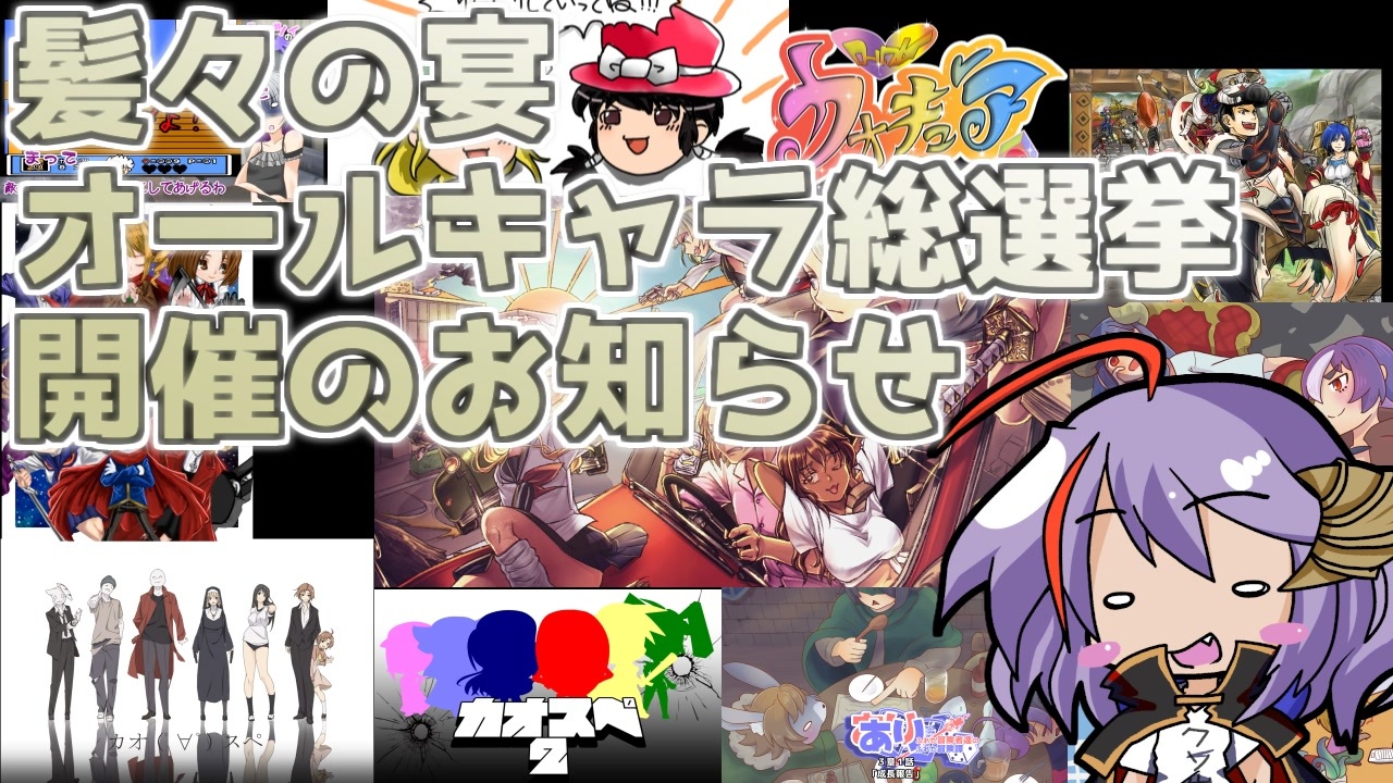この動画は、普段この投稿者の動画を見ている方限定の人気投票企画です。<br>一つも動画を見ていないという方は、動画説明文の下にあるリンクから動画をご視聴ください。<br><br>【投票ルール】<br>●投票はコメントで行う。<br>●投票は『キャラ部門』『TRPG部門』『総選挙部門』の3つで行われます。<br>●投票回数は、キャラ部門、TRPG部門は一人三票。総選挙部門は一人五票行えます。ツールにでコメントIDをなんやかんやするので不正は弾けます。<br>●コメント一つにつき一票として計算します。一つのコメントに複数のキャラの名前があったとしても投票対象以外はカウントしません。<br>●投票に関しては何に投票したかわかれば、誤字脱字は問題ありません。<br>●締め切りは2024年9月30日<br><br><br /><br>シリーズ物part1マイリスト⇒<a href="https://www.nicovideo.jp/mylist/50237291" target="_blank" rel="noopener">mylist/50237291</a>(最終更新2025.10.11)<br>企画物、単発物⇒<a href="https://www.nicovideo.jp/mylist/27189551" target="_blank" rel="noopener">mylist/27189551</a><br>Twitter⇒<a href="https://twitter.com/katiku2" target="_blank" rel="noopener nofollow">https://twitter.com/katiku2</a><br>