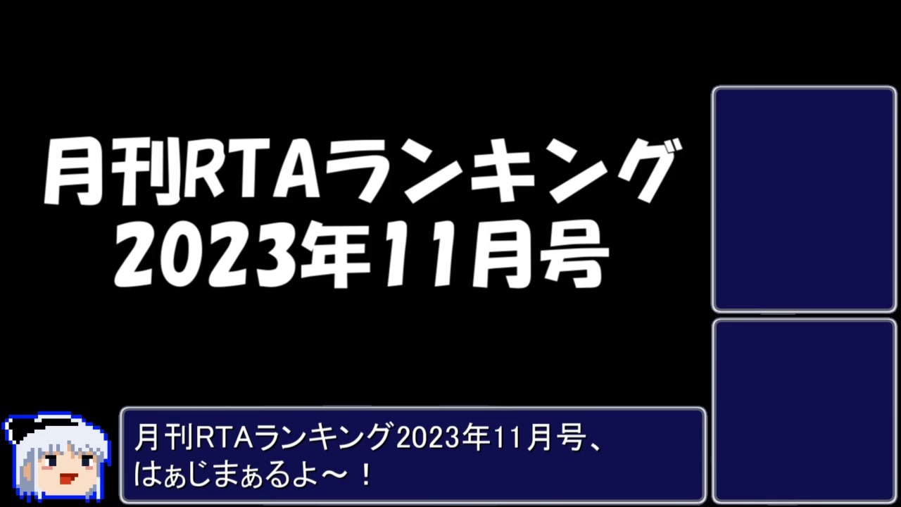 ランキングの集計方法について<br><a href="https://agfxrjlrprjoch6.hatenablog.com/entry/2021/10/17/170332" target="_blank" rel="noopener nofollow">https://agfxrjlrprjoch6.hatenablog.com/entry/2021/10/17/170332</a><br><br>マイリスト数が底をついてしまったので、<br>今月号はseesaawikiで対応する事としました。<br> 1位~100位<br><a href="https://rta-ranking-per-month.memo.wiki/d/2023%c7%af11%b7%ee%b9%e6" target="_blank" rel="noopener nofollow">https://rta-ranking-per-month.memo.wiki/d/2023%c7%af11%b7%ee%b9%e6</a><br>マイリストに関してかなり編集量が増えたので、他に楽な方法があればまたやり方が変わるかもしれません。<br><br>この動画で利用している株式会社スクウェア・エニックスを代表とする共同著作者が権利を所有する著作物及びスギヤマ工房有限会社が権利を所有する楽曲の転載・配布は禁止いたします。<br>© 1990 ARMOR PROJECT/BIRD STUDIO/SPIKE CHUNSOFT/SQUARE ENIX All Rights Reserved.<br>© SUGIYAMA KOBO