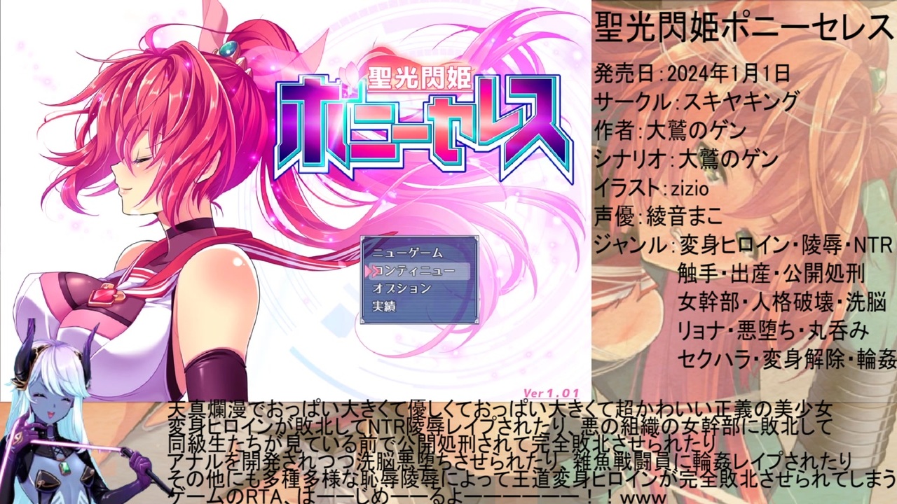 <span style="color: #ff0000; font-size: 18px;"><strong>王道を征く正義の変身ヒロインRPGを<br>10partに渡って実況するのは久しぶりなので、初投稿です!!!</strong></span><br><br><span style="color: #ff0000; font-size: 24px;">これだから変身ヒロインで<br>ヌくのは止められない!!<br>憧れは止められない!!</span><br><br><br><span style="color: #38761d; font-size: 24px;"><strong>ギャハハハハハ!!!<br>デバイス制限回避してて草生えますわ!!!</strong></span><br><br><br>あらすじ<br><br>街に突如現れたザイダーグと名乗る戦闘員の集団。<br>人間離れした戦闘力を有する彼らは警察では手に負えず街は混乱状態に。<br><br>しかし、そこに一人の少女が現れた。彼女の名前は聖光閃姫ポニーセレス。<br>聖衣に身を包み、悪を蹴散らす正義のヒロイン。<br><br>街の人々は安堵し、そして歓喜に沸いた。<br><br>彼女の活躍でザイダーグは壊滅すると思われたが、<br>ザイダーグを統べる闇王ダーグノア、幹部、怪人達の登場により<br>ポニーセレスに絶体絶命の危機が訪れようとしていた。<br><br><br><span style="font-size: 18px;">スキヤキング様のサイト<br>先頭の「h」を省いてるから気を付けてね!<br>cien:ttps://ci-en.dlsite.com/creator/3239<br>X(旧Twitter)→ttps://x.com/geneagle_1</span><br><br><br>いいね→今回も、詠んじまったぜ・・・<br><br><br><span style="font-size: 18px;">聖光閃姫ポニーセレスのDLsiteページ<br>先頭の「h」を省いてるから気を付けてね!<br>ttps://www.dlsite.com/maniax/work/=/product_id/RJ439573.html</span><br><br><br><br>こっちはドゥーチェの!!<br><br>Twitter ID→@Duce_Ishizawa<br><br>cien→ttps://ci-en.dlsite.com/creator/21054