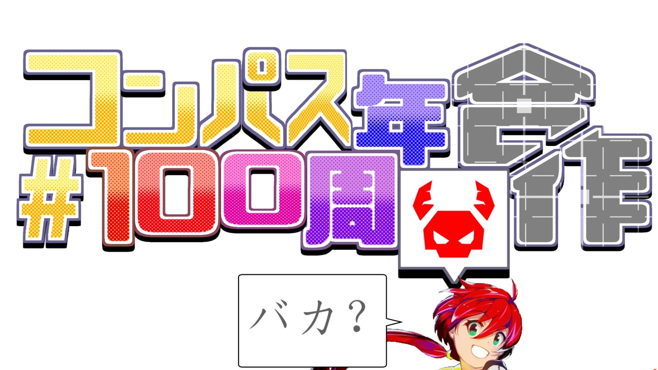 -お詫び-<br>前回投稿した合作ですが、「だとしても6.7周年じゃないか」との旨のご指摘があり、タイトルに誤りがあった事が判明しました。<br><br>誠に申し訳ございません。<br><br><span style="color: #783f04; font-size: 24px;"><strong><i>#</i></strong></span><span style="color: #b45f06; font-size: 24px;"><strong><i>コ</i></strong></span><span style="color: #e69138; font-size: 24px;"><strong><i>ン</i></strong></span><span style="color: #ff9900; font-size: 24px;"><strong><i>パス</i></strong></span><span style="color: #ff0000; font-size: 24px;"><strong><i><u>100</u></i></strong></span><span style="color: #b45f06; font-size: 24px;"><strong><i>周</i></strong></span><span style="color: #783f04; font-size: 24px;"><strong><i>年</i></strong></span>を記念して、コンパスが大好きな投稿者13名で合作をしました!<br>是非お楽しみください!<br><br>参加者マイリス→( <a href="https://www.nicovideo.jp/mylist/76987559" target="_blank" rel="noopener">mylist/76987559</a> )
