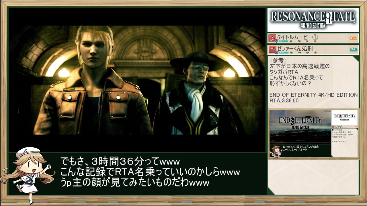 ニコニコ動画復活ッ!(あぁ^~聖刻の音ぉ~)<br><br>【GAME】 <br>Resonance of fate(レゾナンスオブフェイト)<br>Steam版(エンドオブエタニティの海外版)<br><br>【レギュレーション】<br>・計測区間:START GAME~クリアデータセーブ説明文表示<br>・難易度:NORMAL<br><br>【<a href="https://www.nicovideo.jp/mylist/76936875" target="_blank" rel="noopener">mylist/76936875</a>】 <br>NEXT≫<a href="https://www.nicovideo.jp/watch/sm43981092" class="watch">sm43981092</a><br><br>≪前作RTA≫<br>【VALKYRIE PROFILE】プラチナトロフィー取得RTA_4:26:47_Part.1<br>≫<a href="https://www.nicovideo.jp/watch/sm42393086" class="watch">sm42393086</a><br><br>≪前走≫<br>END OF ETERNITY 4K/HD EDITION RTA_3:36:50_Part.1<br>≫<a href="https://www.nicovideo.jp/watch/sm37506037" class="watch">sm37506037</a><br><br>Other Cielo’s Title <br>【<a href="https://www.nicovideo.jp/mylist/50418741" target="_blank" rel="noopener">mylist/50418741</a> 】<br><br>twitter <a href="https://twitter.com/Cielo_Polo" target="_blank" rel="noopener nofollow">https://twitter.com/Cielo_Polo</a><br>