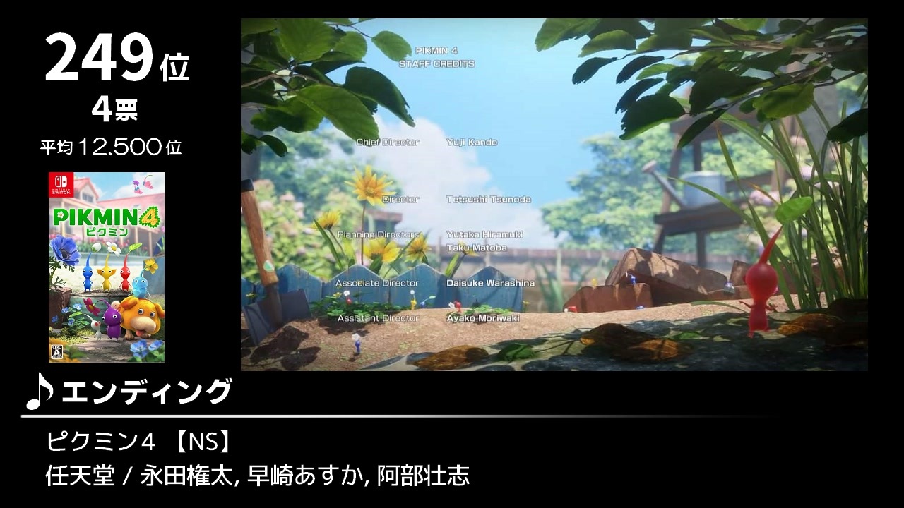 2023年の新曲Part6は257~234位の24曲を収録。<br><br>◆ショートカット:<br>①<a href="#" class="seekTime" data-seekTime="00:17" onclick="seekNicoPlayer('#00:17'); return false;">#00:17</a> ②<a href="#" class="seekTime" data-seekTime="03:52" onclick="seekNicoPlayer('#03:52'); return false;">#03:52</a> ③<a href="#" class="seekTime" data-seekTime="06:15" onclick="seekNicoPlayer('#06:15'); return false;">#06:15</a> ④<a href="#" class="seekTime" data-seekTime="10:14" onclick="seekNicoPlayer('#10:14'); return false;">#10:14</a> ⑤<a href="#" class="seekTime" data-seekTime="13:10" onclick="seekNicoPlayer('#13:10'); return false;">#13:10</a> ⑥<a href="#" class="seekTime" data-seekTime="14:33" onclick="seekNicoPlayer('#14:33'); return false;">#14:33</a> ⑦<a href="#" class="seekTime" data-seekTime="16:50" onclick="seekNicoPlayer('#16:50'); return false;">#16:50</a> ⑧<a href="#" class="seekTime" data-seekTime="19:19" onclick="seekNicoPlayer('#19:19'); return false;">#19:19</a> ⑨<a href="#" class="seekTime" data-seekTime="21:17" onclick="seekNicoPlayer('#21:17'); return false;">#21:17</a> ⑩<a href="#" class="seekTime" data-seekTime="27:28" onclick="seekNicoPlayer('#27:28'); return false;">#27:28</a> ⑪<a href="#" class="seekTime" data-seekTime="31:00" onclick="seekNicoPlayer('#31:00'); return false;">#31:00</a> ⑫<a href="#" class="seekTime" data-seekTime="38:49" onclick="seekNicoPlayer('#38:49'); return false;">#38:49</a> ⑬<a href="#" class="seekTime" data-seekTime="41:11" onclick="seekNicoPlayer('#41:11'); return false;">#41:11</a> ⑭<a href="#" class="seekTime" data-seekTime="44:19" onclick="seekNicoPlayer('#44:19'); return false;">#44:19</a> ⑮<a href="#" class="seekTime" data-seekTime="47:20" onclick="seekNicoPlayer('#47:20'); return false;">#47:20</a> ⑯<a href="#" class="seekTime" data-seekTime="50:31" onclick="seekNicoPlayer('#50:31'); return false;">#50:31</a> ⑰<a href="#" class="seekTime" data-seekTime="54:48" onclick="seekNicoPlayer('#54:48'); return false;">#54:48</a> ⑱<a href="#" class="seekTime" data-seekTime="58:24" onclick="seekNicoPlayer('#58:24'); return false;">#58:24</a> ⑲<a href="#" class="seekTime" data-seekTime="62:09" onclick="seekNicoPlayer('#62:09'); return false;">#62:09</a> ⑳<a href="#" class="seekTime" data-seekTime="63:48" onclick="seekNicoPlayer('#63:48'); return false;">#63:48</a> ㉑<a href="#" class="seekTime" data-seekTime="67:24" onclick="seekNicoPlayer('#67:24'); return false;">#67:24</a> ㉒<a href="#" class="seekTime" data-seekTime="71:37" onclick="seekNicoPlayer('#71:37'); return false;">#71:37</a> ㉓<a href="#" class="seekTime" data-seekTime="74:58" onclick="seekNicoPlayer('#74:58'); return false;">#74:58</a> ㉔<a href="#" class="seekTime" data-seekTime="78:45" onclick="seekNicoPlayer('#78:45'); return false;">#78:45</a><br><br><br><a href="https://www.nicovideo.jp/watch/sm43951709" class="watch">sm43951709</a> ←前【<a href="https://www.nicovideo.jp/mylist/76757327" target="_blank" rel="noopener">mylist/76757327</a>】次→ <a href="https://www.nicovideo.jp/watch/sm44016078" class="watch">sm44016078</a><br><br><br><span style="color: #00afcc; font-size: 16px;"><strong>◆2023年のゲーム・サントラ購入先まとめはこちら!</strong></span><br><a href="https://sinkyoku.blogspot.com/" target="_blank" rel="noopener nofollow">https://sinkyoku.blogspot.com/</a><br><span style="font-size: 11px;">(今年は50音順でページ分けました、随時追加していきます)</span><br>
