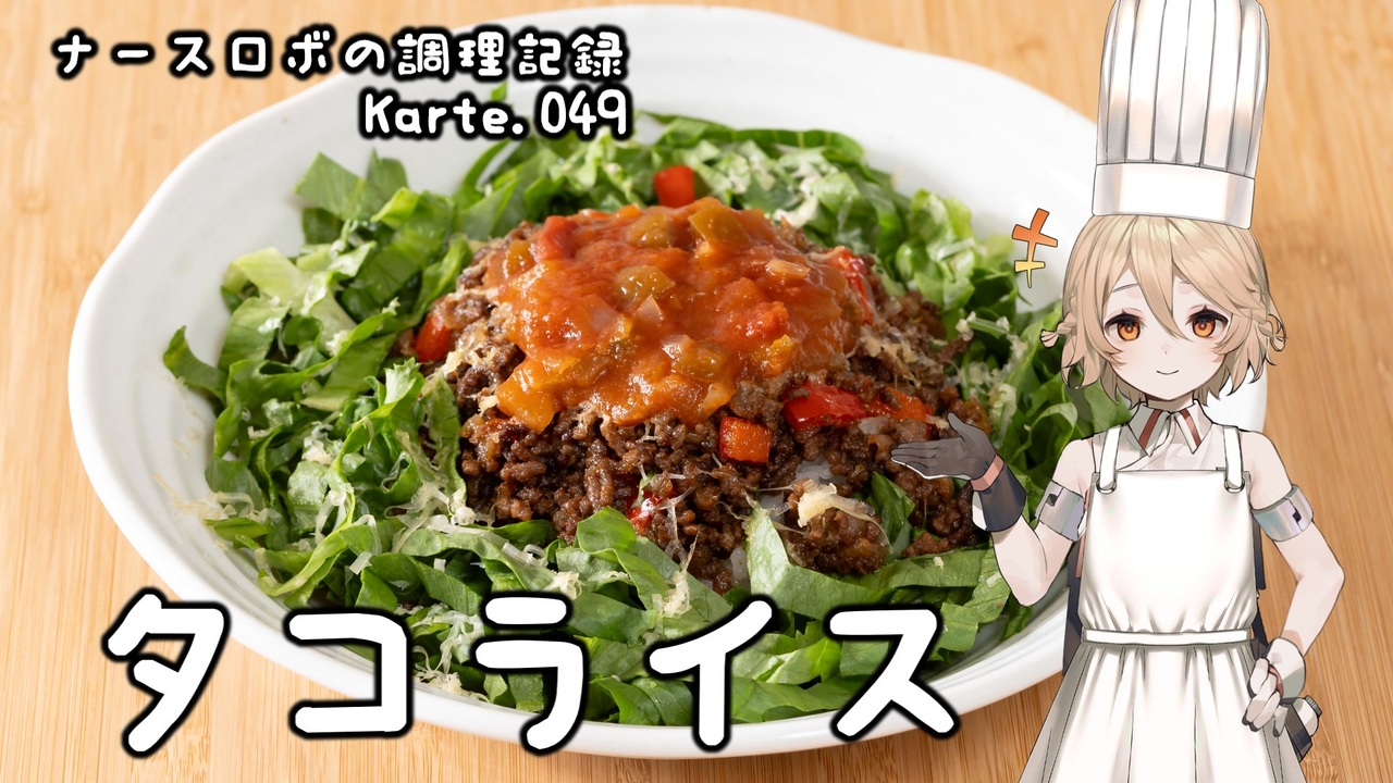 Part49は沖縄発祥タコライス!<br>スパイスと程よい辛さの効いたお料理です!<br>タコスミートさえ作ればあとはとっても簡単なのもポイント。<br>うちの夏の定番料理だったりします。<br>皆さんもぜひ作ってみてくださいね。<br><br>音声: VOICEVOX:ナースロボ_タイプT<br>立ち絵: 捨て犬A<br>イラスト: いらすとや<br>SE: otologic, 効果音ラボ<br>BGM: BGMer<br /><br>[各種リンク]<br>ニコニコ動画: <a href="http://nicovideo.jp/user/130153578" target="_blank" rel="noopener nofollow">http://nicovideo.jp/user/130153578</a><br>YouTubeメイン(料理): <a href="http://youtube.com/@cooking25euph" target="_blank" rel="noopener nofollow">http://youtube.com/@cooking25euph</a><br>YouTubeサブ(料理以外): <a href="https://youtube.com/@sub25euph" target="_blank" rel="noopener nofollow">https://youtube.com/@sub25euph</a><br>X (twitter): <a href="https://twitter.com/nico25euph" target="_blank" rel="noopener nofollow">https://twitter.com/nico25euph</a><br>Bluesky: <a href="http://nico25euph.bsky.social" target="_blank" rel="noopener nofollow">http://nico25euph.bsky.social</a><br>TikTok: <a href="http://tiktok.com/@nico25euph" target="_blank" rel="noopener nofollow">http://tiktok.com/@nico25euph</a>