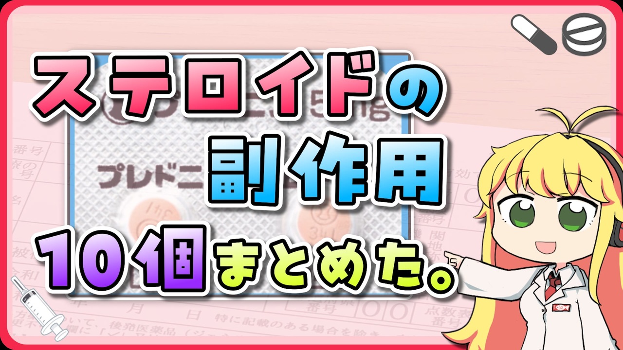 ニコニコが復活したので、お薬解説も再開です。<br>やっと多くの人にお薬を布教できるぜ…!<br><br><span style="color: #0000ff; font-size: 16px;"><strong>Instagramでは、本動画の内容を医療従事者向けにまとめています。</strong></span><br><a href="https://www.instagram.com/p/C-_r1FjPNz4" target="_blank" rel="noopener nofollow">https://www.instagram.com/p/C-_r1FjPNz4</a><br><br><span style="color: #ff0000; font-size: 18px;"><strong>いいねをするとプチお薬解説が見れるよ!</strong></span><br><br>●Youtube(ゲーム実況チャンネル)<br><a href="https://www.youtube.com/channel/UCcLWyYVS3ysazvYjN7pKXuw" target="_blank" rel="noopener nofollow">https://www.youtube.com/channel/UCcLWyYVS3ysazvYjN7pKXuw</a><br><strong>●Youtube(お薬解説チャンネル)本動画はこちらのチャンネルに投稿しています</strong><br><a href="https://www.youtube.com/channel/UCqp3XrY7wux-E3kl4A4ZmQQ" target="_blank" rel="noopener nofollow">https://www.youtube.com/channel/UCqp3XrY7wux-E3kl4A4ZmQQ</a><br>●Twitter<br><a href="https://twitter.com/Iwashi_bibili" target="_blank" rel="noopener nofollow">https://twitter.com/Iwashi_bibili</a> <br><br><br>立ち絵:<br>弦巻マキ:えびごはん 様( <a href="https://twitter.com/ebi_gohan )" target="_blank" rel="noopener nofollow">https://twitter.com/ebi_gohan )</a> <br><strong><<オリジナル立ち絵のため配布しておりません>></strong><br>紲星あかり:ふにちか 様(<a href="https://seiga.nicovideo.jp/seiga/im9588561" target="_blank" rel="noopener">im9588561</a>)<br><br>使用ソフト:<br>Premiere pro<br>AfterEffects<br>2dActorTools<br>PSDTool<br>A.I.VOICE<br>VOICEROID2<br>AoiSupport