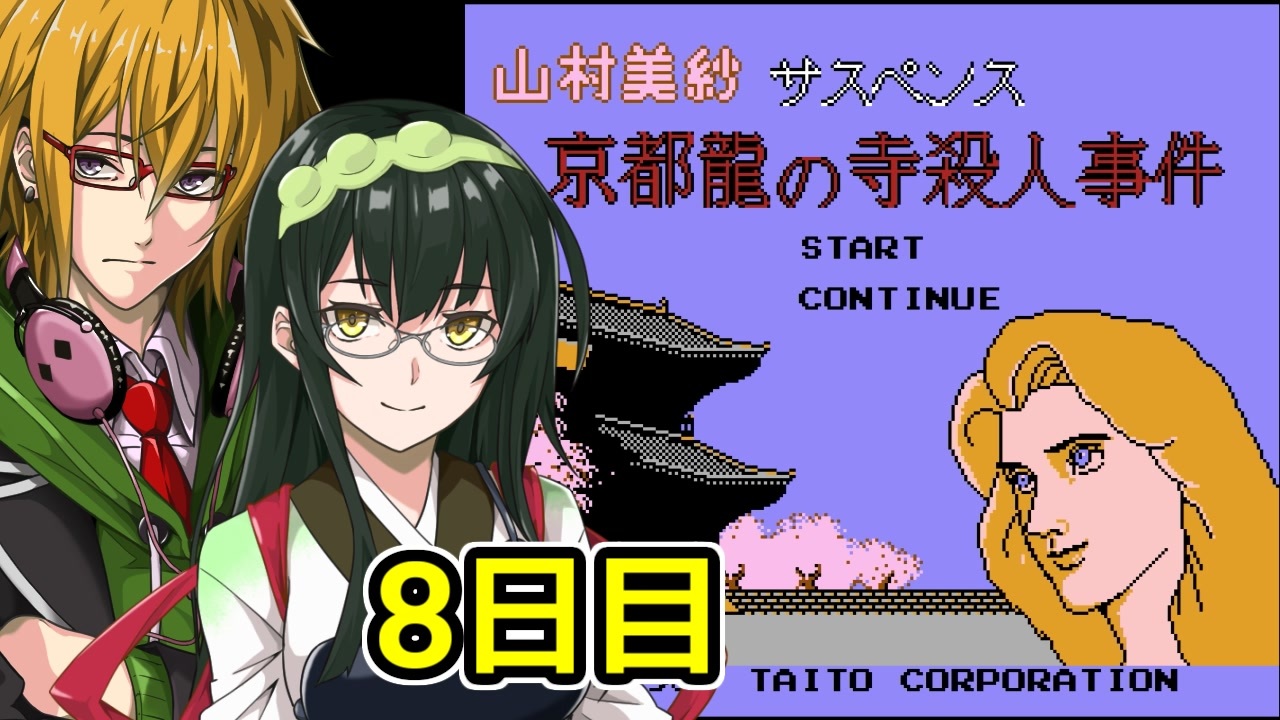 2024年8月 ファミコン動画投稿祭2の参加作品です。<br>タイトーの推理アドベンチャーゲーム「京都 龍の寺殺人事件」のフルボイスプレイです。<br>通常のフルボイスプレイの他、主人公のセリフを補完し、音声だけ聞いても話がわかるようにしてあります。<br>グロテスクor暴力的な表現があるかもしれないのでご注意ください。<br>ゲームの攻略情報、シナリオ、隠し要素などのネタばれをふんだんに含みます。<br><br>■フルボイスキャスト<br>主人公:Voicepeak男性3<br>キャサリン・ターナー:Voicepeak邪神ちゃん<br>狩矢警部:CoeiroinkAI声優-銀芽<br>およね:Voicepeak女性5<br>薮本医師:VoiceVOX麒ヶ島宗鱗<br>源三:Voicepeak男性6<br>尾沢菜美子:Voicepeak女性3<br>金原社長:Voicepeakフリモメン<br>菊池アキラ:VoiceVOX剣崎雌雄<br>バーのママ:Coeiroinkフリーキィ=カナメ<br>ユキ:Coeiroink つくよみちゃん<br>小宮ミキ:Voicepeak弦巻マキ<br>星野管理人:Coeiroink真国泰人<br>通行人:Coeiroink繰推亭そそる<br><br>■案内役<br>Voiceroid水奈瀬コウ、東北ずん子<br><br>■その他使用素材<br>・ゲーム「京都 龍の寺殺人事件」:株式会社タイトー<br>・水奈瀬コウ、東北ずん子立ち絵:物見戸<br>・ファミコン動画投稿祭2ロゴ:穂梅<br>・スケジュールの顔アイコン:物見戸、こーすけさんたまりあ、青トキエ、moiky、MtU