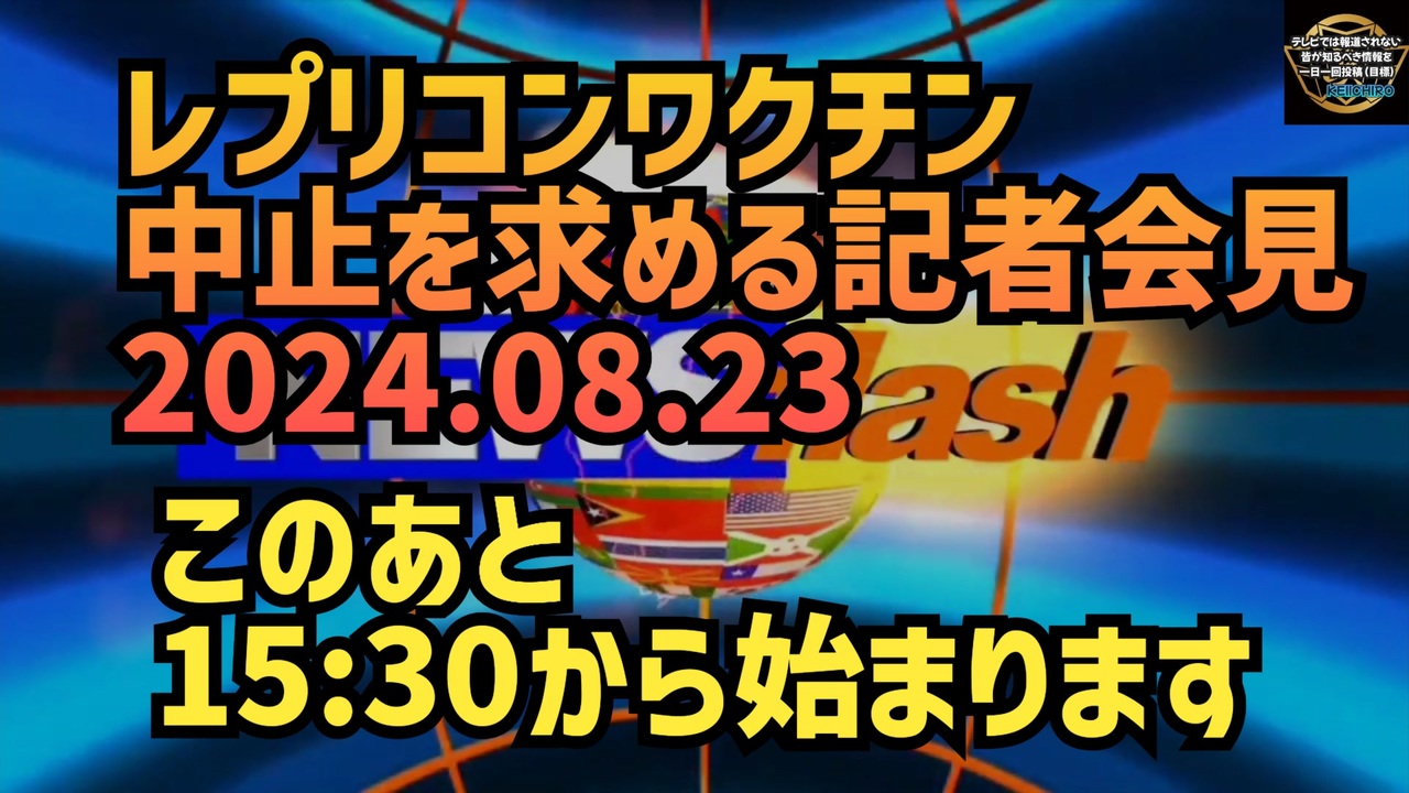 このあと15時30分から<br><br>【レプリコンワクチン中止を求める記者会見】<br><a href="https://x.com/ganaha_masako/status/1826867755959845263?t=tshxAhocxFf9VMjzuYzjZA&s=19" target="_blank" rel="noopener nofollow">https://x.com/ganaha_masako/status/1826867755959845263?t=tshxAhocxFf9VMjzuYzjZA&s=19</a><br><br><br>既に既存の大手メディアが続々と参加表明している模様。<br><br>ワクチン反対の記者会見に大変革が起きるか?<br>皆様もぜひご視聴下さい!<br><br>生配信は我那覇さんの<br>XLIVE<br><a href="https://x.com/ganaha_masako/status/1826867755959845263?t=04-yISvND4fZZRVNeCGmvw&s=19" target="_blank" rel="noopener nofollow">https://x.com/ganaha_masako/status/1826867755959845263?t=04-yISvND4fZZRVNeCGmvw&s=19</a><br>や<br>Rumbleから<br><a href="https://rumble.com/v5by6lx--..etc-mrna-.html" target="_blank" rel="noopener nofollow">https://rumble.com/v5by6lx--..etc-mrna-.html</a><br><br>我那覇さんnote<br><a href="https://note.com/masakoganaha/n/n2de19556c612" target="_blank" rel="noopener nofollow">https://note.com/masakoganaha/n/n2de19556c612</a><br><br><br />著作権、肖像権に配慮して作成しております。<br><br>◆気になったニュースの台本!?<br>メモ代わりに作った台本をそのままあげてます<br><a href="https://keiichiro8140.hatenablog.com/." target="_blank" rel="noopener nofollow">https://keiichiro8140.hatenablog.com/.</a><br><br><br>ここからはシリーズ紹介<br><br><br>◆ ワクチン解毒・デトックス<br><a href="https://x.gd/fZweg" target="_blank" rel="noopener nofollow">https://x.gd/fZweg</a><br><br>◆ウイリアム・マキス博士のがん治療(イベルメクチン・フェンベンダゾール等)<br><a href="https://x.gd/AtFYS" target="_blank" rel="noopener nofollow">https://x.gd/AtFYS</a><br><br>◆予防接種健康被害救済制度<br><a href="https://x.gd/0xK9x" target="_blank" rel="noopener nofollow">https://x.gd/0xK9x</a><br><br>◆気になったニュース #1501~<br><br>◆ 【ショートver】気になったニュース<br><a href="https://x.gd/7MxXC" target="_blank" rel="noopener nofollow">https://x.gd/7MxXC</a><br><br>◆ 気になったニュース #1001~<br><a href="https://x.gd/Lp8gv" target="_blank" rel="noopener nofollow">https://x.gd/Lp8gv</a><br><br>◆ 気になったニュース #501~<br><a href="https://x.gd/EmbS4" target="_blank" rel="noopener nofollow">https://x.gd/EmbS4</a><br><br>◆ 気になったニュース #1~#500<br><a href="https://x.gd/uPhNb" target="_blank" rel="noopener nofollow">https://x.gd/uPhNb</a><br><br>◆ X(旧Twitter)・テレグラムで気になった情報<br><a href="https://x.gd/YG6FT" target="_blank" rel="noopener nofollow">https://x.gd/YG6FT</a><br><br>◆ 日比谷5万人パレードデ⚪生放送アーカイブ動画<br><a href="https://x.gd/3CHJv" target="_blank" rel="noopener nofollow">https://x.gd/3CHJv</a><br><br>◆日比谷5万人パレード⚪モのマイリスト作ってみました<br><a href="https://nico.ms/mylist/76828848?ref=sp_other" target="_blank" rel="noopener nofollow">https://nico.ms/mylist/76828848?ref=sp_other</a><br><br>◆3.30 令和の百姓⚪⚪<br><a href="https://www.nicovideo.jp/series/511791?ref=garage_share_other" target="_blank" rel="noopener nofollow">https://www.nicovideo.jp/series/511791?ref=garage_share_other</a><br><br>◆ 及川幸久さんの【XNEWS】シリーズ<br><a href="https://x.gd/3k78K" target="_blank" rel="noopener nofollow">https://x.gd/3k78K</a><br><br>◆これまでの動画<a href="https://x.gd/sPXoJ" target="_blank" rel="noopener nofollow">https://x.gd/sPXoJ</a><br><br>◆もしも(BAN)の時のためのマイリンク集<a href="https://lit.link/K-16_News44" target="_blank" rel="noopener nofollow">https://lit.link/K-16_News44</a><br><br>