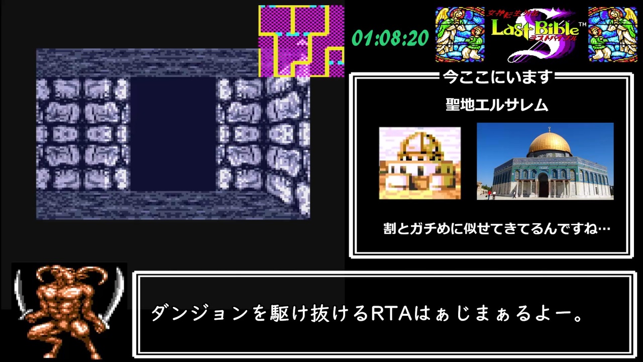 13F建てのハッテン場できねぇかなぁ。<br><br>聖地エルサレム1F ~ 聖地エルサレム12F<br><br><a href="https://www.nicovideo.jp/watch/sm43974664" class="watch">sm43974664</a> < 前 次 > <a href="https://www.nicovideo.jp/watch/sm44359398" class="watch">sm44359398</a><br>※リンクミス訂正しました。<br> 指摘兄貴ありがとナス!<br><br>【レギュレーション・動作環境など】<br>・真ルートED(動画内で言及予定)<br>・analogue pocket(ステートセーブ・ロード不可) + 8bitdo pro 2(連射機能不使用)<br>・計測開始:タイトル画面で「はじめから」を選択<br>・計測終了:EDで「ゲームしゅうりょう」が表示された瞬間<br><br>【お世話になったサイトなど】<br>・ポケットゲーマー 様<br><a href="https://www.pocketgamer.info/" target="_blank" rel="noopener nofollow">https://www.pocketgamer.info/</a><br>・女神転生外伝 ラストバイブル スペシャル @wiki 様<br><a href="https://w.atwiki.jp/lastbiblespecial/" target="_blank" rel="noopener nofollow">https://w.atwiki.jp/lastbiblespecial/</a><br>・Sandstorm 様<br><a href="https://jzunkodj4y.livedoor.blog/archives/cat_50036576.html" target="_blank" rel="noopener nofollow">https://jzunkodj4y.livedoor.blog/archives/cat_50036576.html</a><br>(3Dダンジョン型RPG向けマッピング支援ツール Mapic Ver0.74を使わせていただきました)<br>