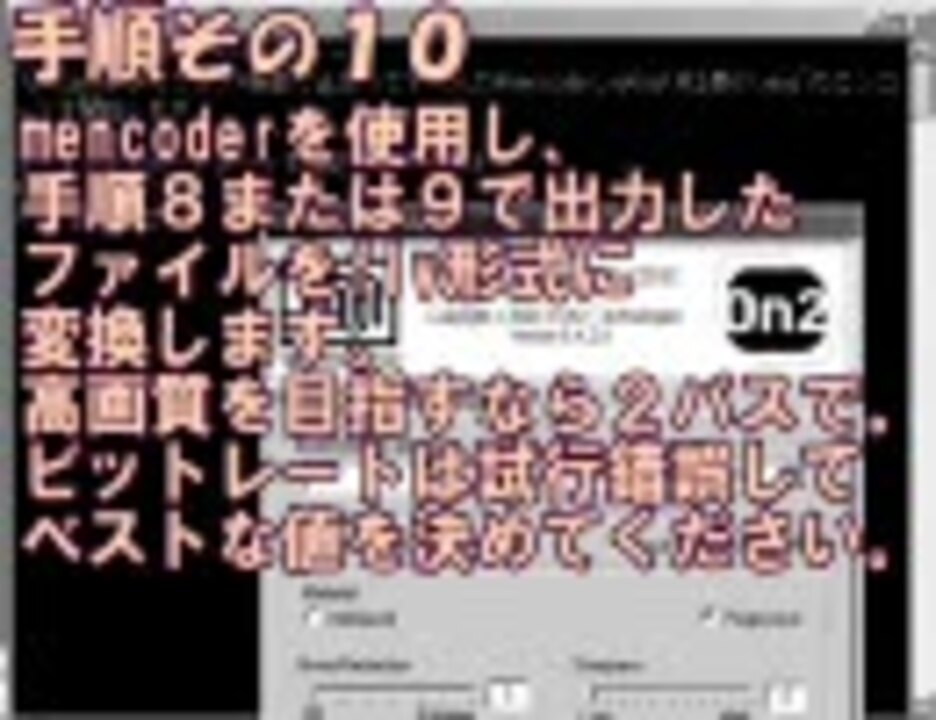 <a href="https://www.nicovideo.jp/watch/sm424334" class="watch">sm424334</a>のような文字がワイプするカラオケ字幕の作り方。興味を持ったら是非お試しを。以下参考URL ①<a href="http://inventor.jp/nico/lite/" target="_blank" rel="noopener nofollow">http://inventor.jp/nico/lite/</a> ②<a href="http://moitah.net/" target="_blank" rel="noopener nofollow">http://moitah.net/</a> ③<a href="http://oab.sytes.net:8000/~aka/RhythmicaLyrics.html" target="_blank" rel="noopener nofollow">http://oab.sytes.net:8000/~aka/RhythmicaLyrics.html</a> ⑤<a href="http://anison.info/movie/txt2ssa.html" target="_blank" rel="noopener nofollow">http://anison.info/movie/txt2ssa.html</a> ⑥<a href="http://www.xucker.jpn.org/product/akjbetas_install.html" target="_blank" rel="noopener nofollow">http://www.xucker.jpn.org/product/akjbetas_install.html</a> ⑦<a href="http://www.paw.hi-ho.ne.jp/milbesos/" target="_blank" rel="noopener nofollow">http://www.paw.hi-ho.ne.jp/milbesos/</a> ⑧<a href="http://fcchandler.home.comcast.net/stable/" target="_blank" rel="noopener nofollow">http://fcchandler.home.comcast.net/stable/</a> ⑩<a href="http://nicowiki.com/encode.html" target="_blank" rel="noopener nofollow">http://nicowiki.com/encode.html</a> 追記。⑥ですが、ajk_betas使って一旦mpeg2に変換するよりも、VP6コーデック(<a href="http://cowscorpion.com/Codec/VP6VFWCodec.html)をインストールして" target="_blank" rel="noopener nofollow">http://cowscorpion.com/Codec/VP6VFWCodec.html)をインストールして</a>、FLV_Extractで映像バラした後にVirtaulDubで直接読み込んだほうが良いです。ただし、ファイルのヘッダ文字列「FLV4」を「VP62」にバイナリエディタで書き換える必要があります。【他のカラオケとか自作MADとか→<a href="https://www.nicovideo.jp/mylist/924791" target="_blank" rel="noopener">mylist/924791</a>】