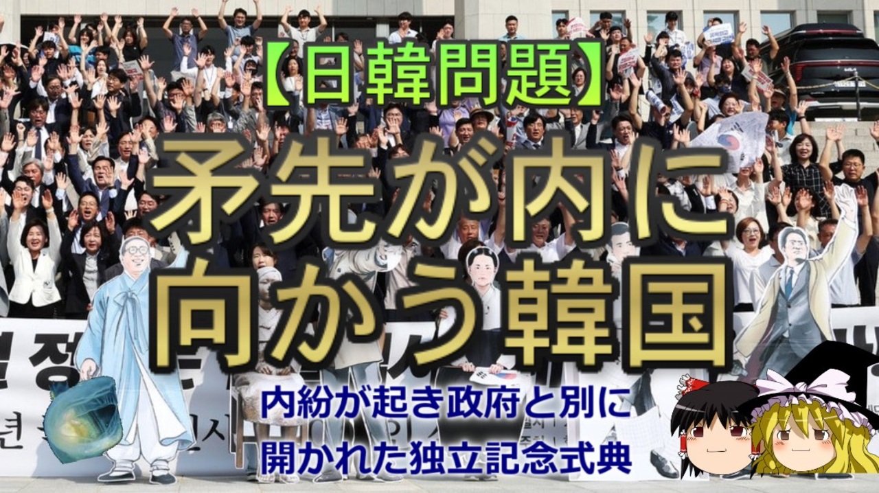 さて、今回は公然と日本批判をできなくなった韓国で、その矛先が内部に向かっている件について扱っていきます。<br>どようびは常温でも冷やしても美味しくいただけます<br>本日のブログ記事<br><a href="https://oogchib.hateblo.jp/entry/2024/08/25/210000" target="_blank" rel="noopener nofollow">https://oogchib.hateblo.jp/entry/2024/08/25/210000</a><br><br>元記事<br>矛先が「内側」へ向かいだした韓国<br><a href="https://oogchib.hateblo.jp/entry/2024/07/11/015301" target="_blank" rel="noopener nofollow">https://oogchib.hateblo.jp/entry/2024/07/11/015301</a><br>対立が激化していく韓国<br><a href="https://oogchib.hateblo.jp/entry/2024/07/18/020332" target="_blank" rel="noopener nofollow">https://oogchib.hateblo.jp/entry/2024/07/18/020332</a><br><br>関連動画<br>【ゆっくり解説】朝日新聞の慰安婦報道検証 part1/2<br><a href="https://www.nicovideo.jp/watch/sm40779826" class="watch">sm40779826</a><br>【ゆっくり解説】竹島はなぜ日本領?<br><a href="https://www.nicovideo.jp/watch/sm38024274" class="watch">sm38024274</a><br>【日韓問題】日韓で異なる「正しさ」の概念 前編<br><a href="https://www.nicovideo.jp/watch/sm31616028" class="watch">sm31616028</a><br>【日韓問題】韓国人は記憶の改変をしているわけではない?<br><a href="https://www.nicovideo.jp/watch/sm35775418" class="watch">sm35775418</a><br><br>注意<br>・この動画は「日韓の価値観の違い」を扱っています<br><br>・うp主のスタンスは「価値観に善悪や優劣は存在しない」というものです<br><br>・相手が不法を働いているからとこちらが不法をして良い理由にはなりません<br><br>・自身の常識が相手にとっても常識とは限りません、「他者がそれを見たら<br>どう思うか」という客観性を常に持ちましょう。<br><br>・日常生活で注意する程度には言動に注意を心がけてください<br><br>・リクエストは原則受け付けていません<br><br>・引用ソースへのリンクが同時掲載のブログにあります<br><br>・毎週日曜日更新<br><br><br>引用ソースと動画のテキストをブログ日韓問題(初心者向け)のほうへ掲載しています。<br><br>日韓問題(初心者向け)<br><a href="https://oogchib.hateblo.jp/" target="_blank" rel="noopener nofollow">https://oogchib.hateblo.jp/</a><br><br>暇つぶしにどうぞ<br><a href="http://ooguchib.blog.fc2.com/" target="_blank" rel="noopener nofollow">http://ooguchib.blog.fc2.com/</a> <br><br>X(旧 twitter) @ooguchib<br><a href="https://x.com/ooguchib" target="_blank" rel="noopener nofollow">https://x.com/ooguchib</a><br><br>前 <a href="https://www.nicovideo.jp/watch/sm43985559" class="watch">sm43985559</a> <a href="https://www.nicovideo.jp/mylist/59069876" target="_blank" rel="noopener">mylist/59069876</a> 次 <a href="https://www.nicovideo.jp/watch/sm44049841" class="watch">sm44049841</a><br><br>番外編マイリスト<br><a href="https://www.nicovideo.jp/mylist/62992608" target="_blank" rel="noopener">mylist/62992608</a><br><br>YouTube版<br><a href="https://youtu.be/GG17iwPJ7B8" target="_blank" rel="noopener nofollow">https://youtu.be/GG17iwPJ7B8</a><br>