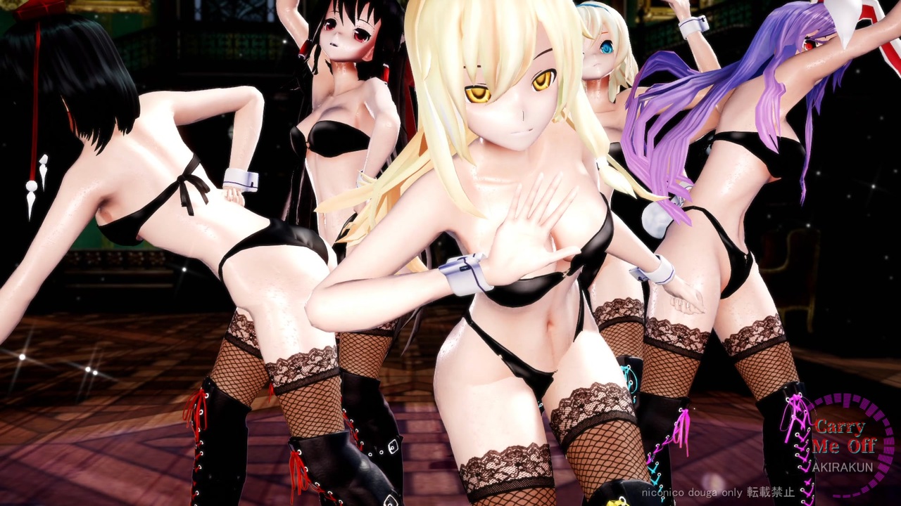 霊夢・魔理沙・アリス・鈴仙・文の5人に踊ってもらいました。この作品は「東方project」の2次創作です。現在、作成リクエストは受け付けていません。<br><br><br>【楽曲】:【初音ミク】Carry Me Off【オリジナル曲+PV】八王子P様 <a href="https://www.nicovideo.jp/watch/sm24288200" class="watch">sm24288200</a><br>【振付】:めろちん様 <a href="https://www.nicovideo.jp/mylist/2938845" target="_blank" rel="noopener">mylist/2938845</a><br>【Dance】:Q'ulle いとくとら様 <a href="https://www.nicovideo.jp/watch/sm24477034" class="watch">sm24477034</a><br>【モーション】:moka様 <a href="https://www.nicovideo.jp/watch/sm25225079" class="watch">sm25225079</a><br>【リップ・表情】:盗賊@つばきP様 <a href="https://www.nicovideo.jp/watch/sm25293173" class="watch">sm25293173</a><br>【カメラ】:AKIRAKUN 作ってみました。<br><br><br>■ステージ<br>絵画の洋館:NOB様 <a href="https://seiga.nicovideo.jp/seiga/im10674142" target="_blank" rel="noopener">im10674142</a><br>コンクリスタジオステージ:栗ごはん様 <a href="https://seiga.nicovideo.jp/seiga/im11456061" target="_blank" rel="noopener">im11456061</a><br><br>■モデル<br>霊夢、魔理沙、アリス:にがもん様、しえら様<br>FL改_鈴仙・U・イナバ_v4.10:フリック様 <a href="https://www.nicovideo.jp/watch/sm19270846" class="watch">sm19270846</a><br>射命丸文:アールビット様<br>衣装:アールビット様<br><br>■エフェクト<br>Ray-mmd-1.5.2:Rui様<br>初心者マテリアル:さらしな様<br>肌マテリアル:MARUSU様<br>AutoLuminous4:そぼろ様<br>水面エフェクト:ビームマンP様<br>空中に漂う埃:化身バレッタ様<br>ikBokeh_v020a:ikeno様<br><br><br>MikuMikuDance:樋口優様<br>MMEffect :舞力介入P様<br>PMDE、PmxE:極北P様<br>AviUtl :KENくん様<br>・Aviutl + x264guiExでエンコード:rigaya様<br>Ut Video Codec Suite:ゆーむP様<br>上海アリス幻楽団・東方project(ZUN様)<br><br><br>mylist ③<a href="https://www.nicovideo.jp/mylist/75586824" target="_blank" rel="noopener">mylist/75586824</a> ② <a href="https://www.nicovideo.jp/mylist/72970530" target="_blank" rel="noopener">mylist/72970530</a> ① <a href="https://www.nicovideo.jp/mylist/63690967" target="_blank" rel="noopener">mylist/63690967</a> 旧 <a href="https://www.nicovideo.jp/mylist/61238351" target="_blank" rel="noopener">mylist/61238351</a><br><br> ※動画の転載は禁止です。 <br>Attention,Unauthorized reproduction prohibited!!
