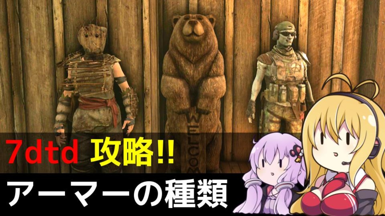 Youtubeのチャンネルはこちら 避難所かつクリエイタープログラム参加に向けて登録してくれると嬉しいです!<br><a href="https://www.youtube.com/@namamono7dtd" target="_blank" rel="noopener nofollow">https://www.youtube.com/@namamono7dtd</a><br><br>7 Days To DieのV1.0 攻略動画です。<br>今回はアーマーの種類についてです。<br><br><a href="#" class="seekTime" data-seekTime="00:00" onclick="seekNicoPlayer('#00:00'); return false;">#00:00</a> アーマーの特性<br><a href="#" class="seekTime" data-seekTime="01:21" onclick="seekNicoPlayer('#01:21'); return false;">#01:21</a> ライトアーマー<br><a href="#" class="seekTime" data-seekTime="03:36" onclick="seekNicoPlayer('#03:36'); return false;">#03:36</a> ミディアムアーマー<br><a href="#" class="seekTime" data-seekTime="05:36" onclick="seekNicoPlayer('#05:36'); return false;">#05:36</a> ヘビーアーマー<br><a href="#" class="seekTime" data-seekTime="07:19" onclick="seekNicoPlayer('#07:19'); return false;">#07:19</a> 今回のまとめ<br><br>【注意】<br>本動画は7 Days To Die V1.0 について解説しています<br>残酷な描写・公式情報から分かる範囲内でネタバレを含むこと<br>ガバ翻訳で間違えている可能性があることをご承知おきください<br>本動画を紹介頂ける場合はお手数をお掛けしますが動画idかURLを表記してください<br>もしよろしければ、チャンネル登録やいいねをお願いします!<br><br>【広告者様等】コメント、いいね、ギフトありがとうございます!<br>また、Youtubeの方のチャンネル登録もありがとうございます!<br><br>【エラータ】<br>何かあれば追加します。