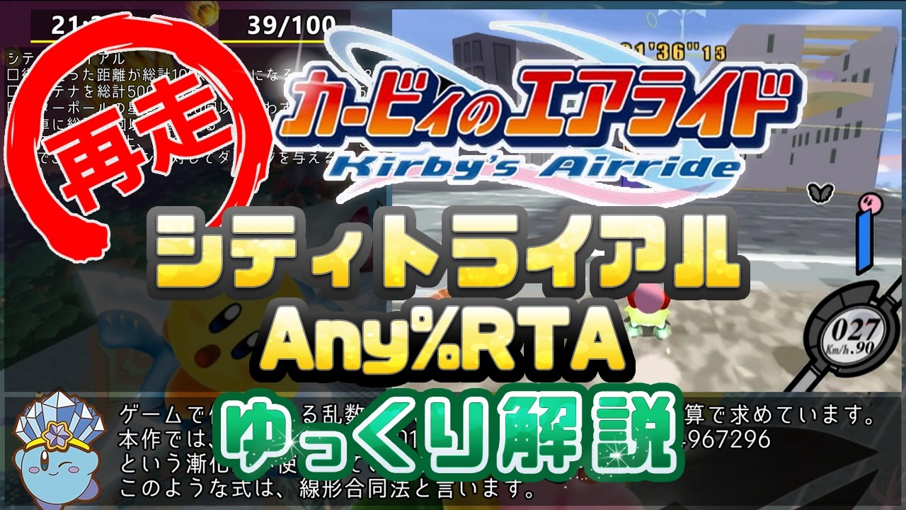乱数を制する者はシティトライアルを制す。<br>『カービィのエアライド』の「City Trial Any%」のRTAのゆっくり解説動画再走版です。<br><br>★ルール<br>シティトライアルモードを選択した瞬間に計測開始、「クリアチェッカーのマスを100コ以上埋める」のマスが埋まった瞬間に計測終了。<br>メモリーカードを差していない状態でゲームを起動するところ、または計測前にセーブデータをオプション画面から全て消去するところを見せる必要があります。<br>複数のコントローラを使用できますが、操作できるのは1人だけです。<br><br>★プレイ環境<br>機種:Wii<br>バージョン:日本版<br>達成日:2024/05/03<br><br>★記録表<br><a href="https://www.speedrun.com/kar?h=City_Trial_Any&x=02qj4pdy" target="_blank" rel="noopener nofollow">https://www.speedrun.com/kar?h=City_Trial_Any&x=02qj4pdy</a><br><br>★カービィシリーズRTA Discordサーバー<br><a href="https://discord.gg/vunx4HK" target="_blank" rel="noopener nofollow">https://discord.gg/vunx4HK</a><br><br>★Twitch<br><a href="https://www.twitch.tv/shirokirby" target="_blank" rel="noopener nofollow">https://www.twitch.tv/shirokirby</a><br><br>★Bluesky<br><a href="https://bsky.app/profile/shirokirby.bsky.social" target="_blank" rel="noopener nofollow">https://bsky.app/profile/shirokirby.bsky.social</a><br /><br>★投稿動画まとめ<br><a href="https://www.nicovideo.jp/mylist/59901580" target="_blank" rel="noopener">mylist/59901580</a><br><br>無断転載禁止