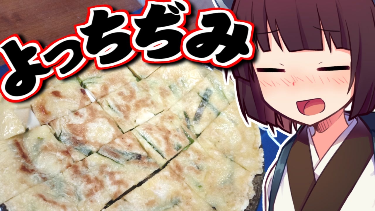 <材料(1人分)><br>ニラ:1/2束<br>カットよっちゃん:2袋<br>小麦粉:80g<br>片栗粉:40g<br>たまご:1個<br>水150ml<br>ごま油:大さじ3<br>濃縮麺つゆ<br>ラー油<br><br><作り方(簡易版)><br>・ニラを5cmに切り揃える。<br>・ボウルに、ニラ・小麦粉・片栗粉・たまご・カットよっちゃん・ニラ・水を入れてよく混ぜる。<br>・フライパンにゴマ油大さじ2を引き、弱火で5分ほど焼く。<br>・裏返したら大さじ1を周囲から流し込み、更に3~4分ほど焼く。<br>・付けダレは、濃縮麺つゆをつけ麵の割合で作り、ラー油を好きなだけ加える。