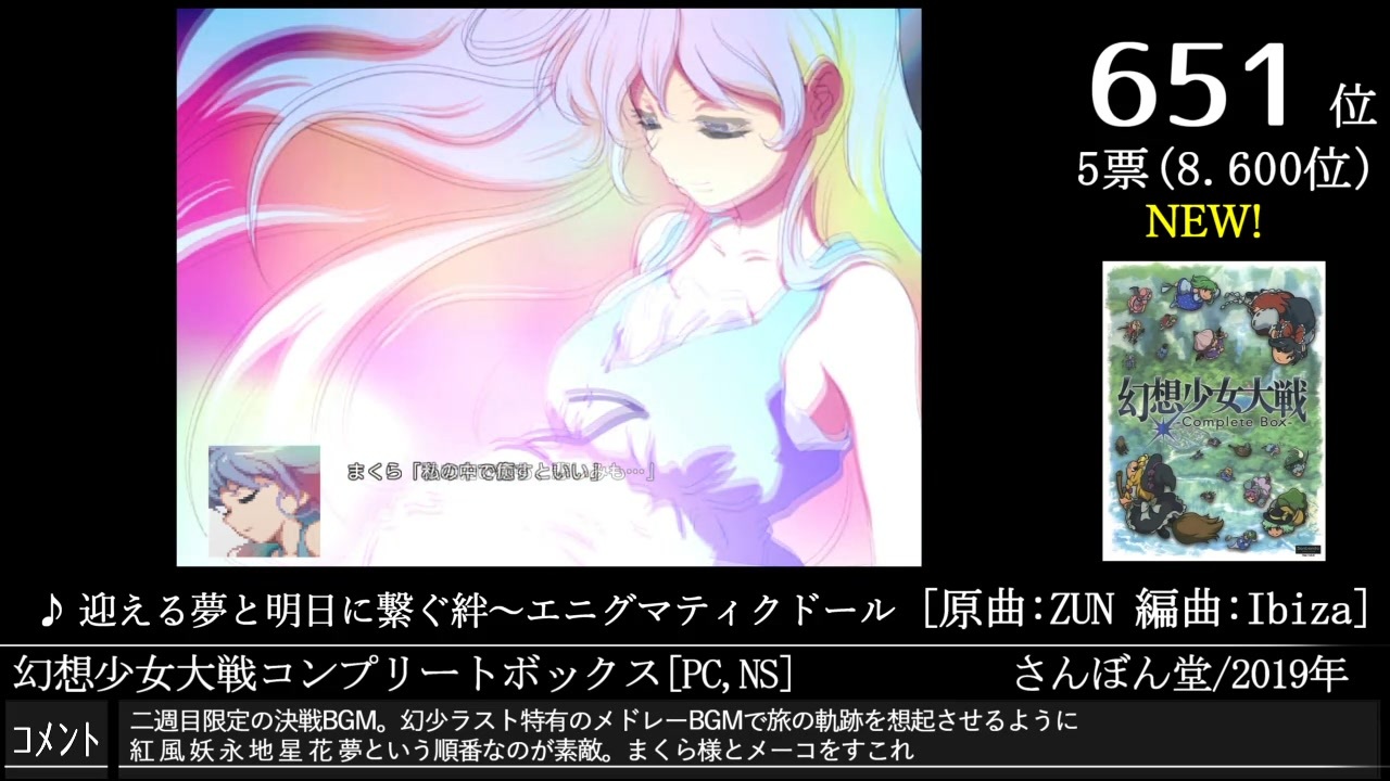 待たせたな<br>---------------------------------<br>スクリーンショット大募集!<br>詳しくは下記投稿フォームのご案内やスクショ状況スプレッドシート等をご確認下さい<br>↓<br><a href="https://ws.formzu.net/dist/S9500351/" target="_blank" rel="noopener nofollow">https://ws.formzu.net/dist/S9500351/</a><br><br>投票結果はこちら<br>↓<br><a href="https://w.atwiki.jp/gamemusicbest100/pages/10214.html" target="_blank" rel="noopener nofollow">https://w.atwiki.jp/gamemusicbest100/pages/10214.html</a><br><br>ご質問等ある際はこちらのページへコメント下さいませ<br>↓<br><a href="https://arutoneriko2.hatenablog.com/entry/2023/12/17/001849" target="_blank" rel="noopener nofollow">https://arutoneriko2.hatenablog.com/entry/2023/12/17/001849</a><br>---------------------------------<br><a href="https://www.nicovideo.jp/watch/sm43899024" class="watch">sm43899024</a>←Part14|今回|Part16→<a href="https://www.nicovideo.jp/watch/sm44079688" class="watch">sm44079688</a> <a href="https://www.nicovideo.jp/mylist/50993049" target="_blank" rel="noopener">mylist/50993049</a><br>---------------------------------<br>↓ショートカット↓<br><br>661位<a href="#" class="seekTime" data-seekTime="0:32" onclick="seekNicoPlayer('#0:32'); return false;">#0:32</a> 661位<a href="#" class="seekTime" data-seekTime="3:51" onclick="seekNicoPlayer('#3:51'); return false;">#3:51</a> 659位<a href="#" class="seekTime" data-seekTime="5:56" onclick="seekNicoPlayer('#5:56'); return false;">#5:56</a> 659位<a href="#" class="seekTime" data-seekTime="8:18" onclick="seekNicoPlayer('#8:18'); return false;">#8:18</a> 656位<a href="#" class="seekTime" data-seekTime="11:18" onclick="seekNicoPlayer('#11:18'); return false;">#11:18</a> 656位<a href="#" class="seekTime" data-seekTime="17:55" onclick="seekNicoPlayer('#17:55'); return false;">#17:55</a><br>656位<a href="#" class="seekTime" data-seekTime="23:11" onclick="seekNicoPlayer('#23:11'); return false;">#23:11</a> 655位<a href="#" class="seekTime" data-seekTime="26:39" onclick="seekNicoPlayer('#26:39'); return false;">#26:39</a> 651位<a href="#" class="seekTime" data-seekTime="28:42" onclick="seekNicoPlayer('#28:42'); return false;">#28:42</a> 651位<a href="#" class="seekTime" data-seekTime="31:38" onclick="seekNicoPlayer('#31:38'); return false;">#31:38</a> 651位<a href="#" class="seekTime" data-seekTime="33:59" onclick="seekNicoPlayer('#33:59'); return false;">#33:59</a> 651位<a href="#" class="seekTime" data-seekTime="35:56" onclick="seekNicoPlayer('#35:56'); return false;">#35:56</a><br>650位<a href="#" class="seekTime" data-seekTime="41:42" onclick="seekNicoPlayer('#41:42'); return false;">#41:42</a> 648位<a href="#" class="seekTime" data-seekTime="45:59" onclick="seekNicoPlayer('#45:59'); return false;">#45:59</a> 648位<a href="#" class="seekTime" data-seekTime="48:11" onclick="seekNicoPlayer('#48:11'); return false;">#48:11</a> 647位<a href="#" class="seekTime" data-seekTime="55:12" onclick="seekNicoPlayer('#55:12'); return false;">#55:12</a> 644位<a href="#" class="seekTime" data-seekTime="58:39" onclick="seekNicoPlayer('#58:39'); return false;">#58:39</a> 644位<a href="#" class="seekTime" data-seekTime="61:25" onclick="seekNicoPlayer('#61:25'); return false;">#61:25</a><br>644位<a href="#" class="seekTime" data-seekTime="65:48" onclick="seekNicoPlayer('#65:48'); return false;">#65:48</a> 642位<a href="#" class="seekTime" data-seekTime="70:09" onclick="seekNicoPlayer('#70:09'); return false;">#70:09</a> 642位<a href="#" class="seekTime" data-seekTime="74:12" onclick="seekNicoPlayer('#74:12'); return false;">#74:12</a> 641位<a href="#" class="seekTime" data-seekTime="77:06" onclick="seekNicoPlayer('#77:06'); return false;">#77:06</a> 640位<a href="#" class="seekTime" data-seekTime="82:53" onclick="seekNicoPlayer('#82:53'); return false;">#82:53</a> 639位<a href="#" class="seekTime" data-seekTime="86:22" onclick="seekNicoPlayer('#86:22'); return false;">#86:22</a><br>638位<a href="#" class="seekTime" data-seekTime="88:36" onclick="seekNicoPlayer('#88:36'); return false;">#88:36</a>