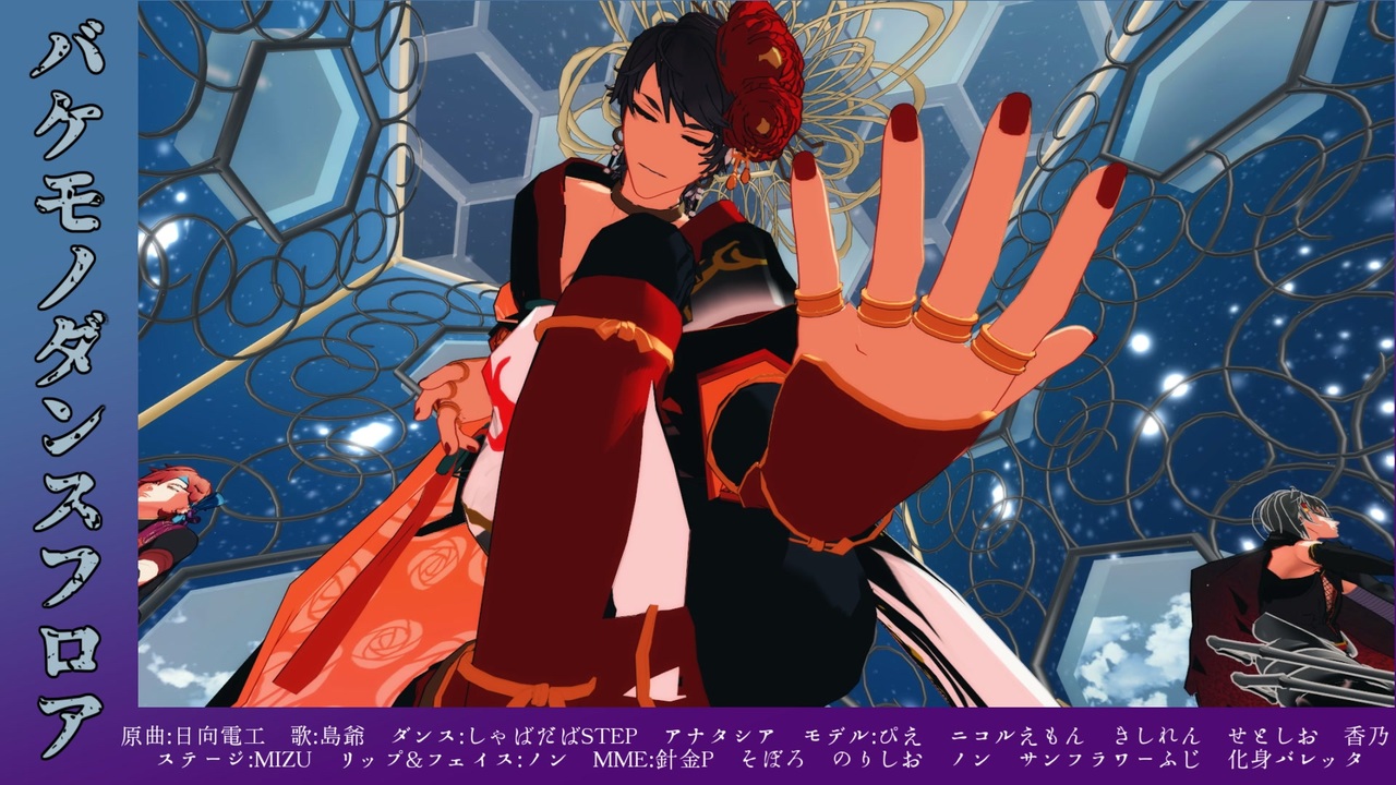 着手からテイク5までの25000F以上の没を乗り越えてテイク6の完走まで5年かかったwww長らくお待たせした方、ずっと応援くださった方、ありがとうでした!がんばりました!!<br><br>これはバンケツでやるって決めてたので大乱闘物理スマッシュブラザーズです。ガシャドクロ君の外套とアシュラ姐さんの羽織とモモチ先生のストールとナマハゲ君の腰綱にばっちっばちに当たるアマツン(まつろわない)です。かわいいね。<br><br>接触の振り付けがあるため、本家ダンス再現のAモーションと私が繋いで作ったBモーションの二種類あります。配布動画はAです(ガシャ君=香乃式、ナマハゲ君=せとしお式で、せとしお様には許可いただいています)固定 <a href="#" class="seekTime" data-seekTime="3:14" onclick="seekNicoPlayer('#3:14'); return false;">#3:14</a> の最後にB <a href="#" class="seekTime" data-seekTime="6:30" onclick="seekNicoPlayer('#6:30'); return false;">#6:30</a> 載せてます。<br><br>===お借りしました 感謝いたします===<br><br>原曲様:初音ミク オリジナル曲 『バケモノダンスフロア』 日向電工様 <a href="https://www.nicovideo.jp/watch/sm30655135" class="watch">sm30655135</a><br>歌:バケモノダンスフロア うたった【SymaG】 <a href="https://www.nicovideo.jp/watch/sm30702925" class="watch">sm30702925</a><br>ダンス:【アナタシア×しゃばだばSTEP】バケモノダンスフロア【オリジナル振付】 <a href="https://www.nicovideo.jp/watch/sm32782112" class="watch">sm32782112</a><br><br>ありがとうございました<br><br>モーションDL=<a href="https://bowlroll.net/file/324016" target="_blank" rel="noopener nofollow">https://bowlroll.net/file/324016</a><br>パスのヒントはモーションの人数です(英数一文字)<br><br><a target="_blank" href="https://qa.nicovideo.jp/faq/show/19424?site_domain=default" style="font-size: 13px;color: #657586; text-decoration: underline; line-height: 1.4">この動画は投稿者によって修正されました</a>