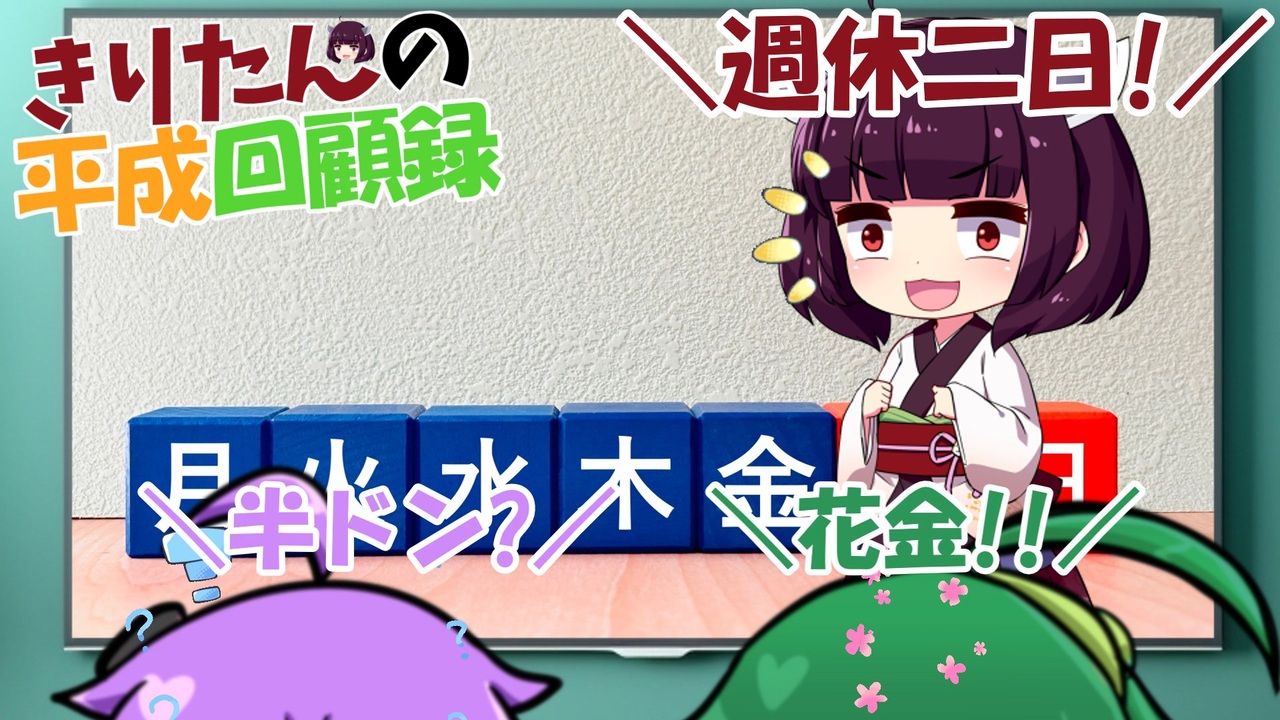 <strong>ようこそ! 平成回顧録へ!</strong><br><br>ニコニ広告が復帰しましたので、今回から通常営業再開となります!<br>花丸さんは平成2年の分も合わせて記載してありますのでご了承ください。<br><br>では、ごゆっくりとお楽しみください!<br><br><a href="https://www.nicovideo.jp/watch/sm43937080" class="watch">sm43937080</a> ← 前 次 → <a href="https://www.nicovideo.jp/watch/sm44070197" class="watch">sm44070197</a><br>回顧目録 → <a href="https://www.nicovideo.jp/mylist/76747431" target="_blank" rel="noopener">mylist/76747431</a><br>YouTube版 → <a href="https://youtu.be/9vlN0IVJjZc" target="_blank" rel="noopener nofollow">https://youtu.be/9vlN0IVJjZc</a><br><br>シリーズ一話マイリスト →<span style="color: #006699;"> </span><a href="https://www.nicovideo.jp/mylist/69322831" target="_blank" rel="noopener">mylist/69322831</a><br>試作品マイリスト → <a href="https://www.nicovideo.jp/mylist/69322827" target="_blank" rel="noopener">mylist/69322827</a><br><br>更新情報とか質問とかX(ツイッター) → <a href="https://twitter.com/suzakatsuki " target="_blank" rel="noopener nofollow">https://twitter.com/suzakatsuki </a><br><br>~お借りしたもの~<br>立ち絵:blueberry様(SD東北きりたん他)、りんどう様(ボイロミニキャラ後ろ姿素材)<br>背景小物類:写真AC様<br> イラストAC様<br>BGM:こんとどぅふぇ HiLi様いっしょ、港町ポルカ、目が覚めた<br>効果音:効果音ラボ様<br> On-Jin ~音人~様<br> <br><br>※リンク情報などは、マイリストの説明欄にて補足しています。