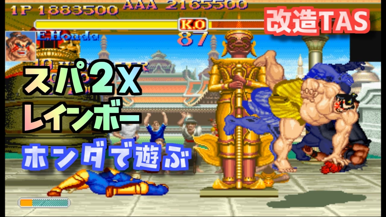 スパⅡXをレインボー&自己流に改造して自己満コンボをする動画です<br>途中から必殺技の当たり判定を変えましたがちょっとやりすぎましたね<br><br>改造内容は<br>・飛び道具連発可能<br>・必殺技をどんな状態でも発動可能<br> →必殺技から必殺技へのキャンセル可能<br> →空中での発動可能<br>・ピヨリ加算計算無効<br>・連打キャンセルをすべての通常技で発動可能<br>・通常技の戻りモーションをすべて1フレームに変更<br>・途中から必殺技の当たり判定変更<br><br>使用ソフト:PS2版ハイパーストリートファイター2<br />動画に「いいね!」「マイリスト登録」よろしくお願いします。<br><br>・おすすめ<br>[TAS]Grand Theft Auto 3 Part1→<a href="https://www.nicovideo.jp/watch/sm14718961" class="watch">sm14718961</a><br>[TAS]MaxPayne デッドターゲット Part1→<a href="https://www.nicovideo.jp/watch/sm15093299" class="watch">sm15093299</a><br>[TAS]michigan Part1→<a href="https://www.nicovideo.jp/watch/sm18393230" class="watch">sm18393230</a><br><br>サポート頂けると励みになります<br>魔界塔士のサポーターになる→<a href="https://creator-support.nicovideo.jp/registration/15153622" target="_blank" rel="noopener nofollow">https://creator-support.nicovideo.jp/registration/15153622</a><br><br>TAS動画まとめ→<a href="https://koeiprogenitor.com/tas/matome/" target="_blank" rel="noopener nofollow">https://koeiprogenitor.com/tas/matome/</a><br>つべ→<a href="https://www.youtube.com/user/koeiprogenitor1/" target="_blank" rel="noopener nofollow">https://www.youtube.com/user/koeiprogenitor1/</a><br>インスタ→<a href="https://www.instagram.com/makaitoshi" target="_blank" rel="noopener nofollow">https://www.instagram.com/makaitoshi</a><br><br>本編→シリーズ一覧見てね<br>