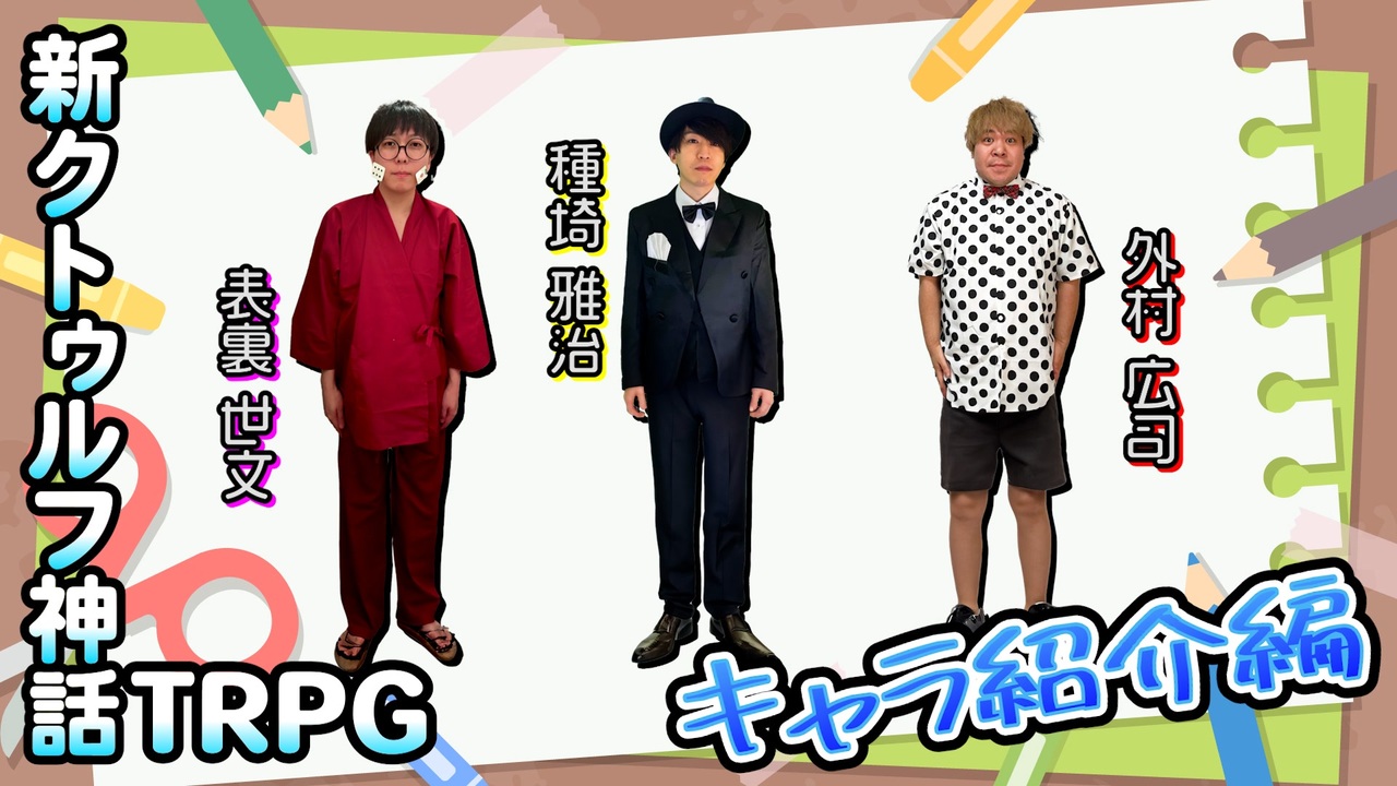 <strong>今回も良いキャラ揃ってます。</strong><br><br>▼KP▼<br>倭寇(わこう) → 神<br>▼プレイヤー▼<br>こーすけ → 外村 広司 <a href="https://iachara.com/view/9073934" target="_blank" rel="noopener nofollow">https://iachara.com/view/9073934</a><br>マサ → 種埼 雅治 <a href="https://iachara.com/view/9090561" target="_blank" rel="noopener nofollow">https://iachara.com/view/9090561</a><br>せらみかる → 表裏 世文 <a href="https://iachara.com/view/9077642" target="_blank" rel="noopener nofollow">https://iachara.com/view/9077642</a><br><br><strong>【次part】下のシリーズ欄から<br>【動画まとめ】 <a href="https://www.nicovideo.jp/mylist/32090282" target="_blank" rel="noopener">mylist/32090282</a></strong><br><br><span style="color: #9900ff;"><strong>▼みんなのX▼ </strong></span><br>【倭寇】 @wakou2525<br>【こーすけ)】 @kosuke_saiore<br>【マサ】 @masa1225kami<br>【せらみかる】 @seramikarutitan<br><br>-【新クトゥルフ神話TRPG ルールブック】---------------------------------------------------<br>本作は、「 株式会社アークライト 」及び「株式会社KADOKAWA」が権利を有する『新クトゥルフ神話TRPG』の二次創作物です。<br><br>Call of Cthulhu is copyright ©1981, 2015, 2019 by Chaosium Inc. ;all rights reserved. Arranged by Arclight Inc.<br>Call of Cthulhu is a registered trademark of Chaosium Inc.<br>PUBLISHED BY KADOKAWA CORPORATION 「新クトゥルフ神話TRPG ルールブック」<br>------------------------------------------------------------------------------------------------