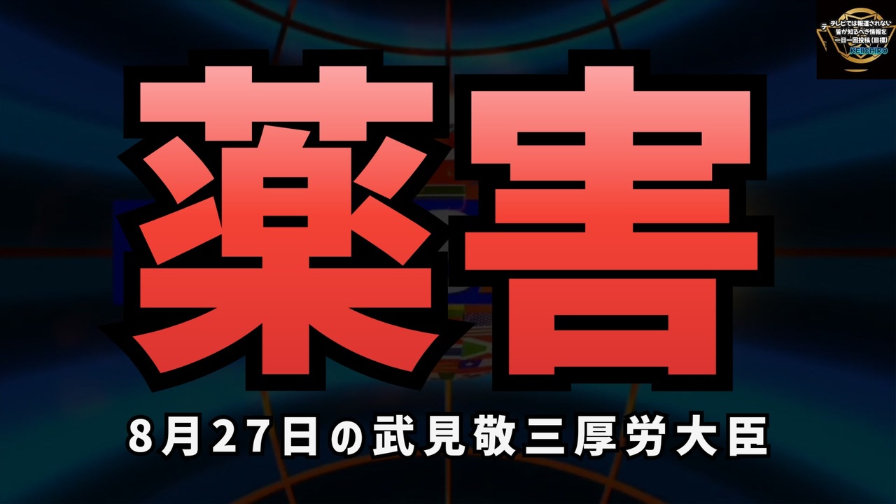 【武見厚労大臣】27日の会見でコロナワクチンの薬害を認める発言「コロナの薬害、コロナの課題も含め、こうした課題に対して厚生労働省としては真摯にこれに向かう」<br><a href="https://x.com/Rapt_plusalpha/status/1828737559897186671?t=4xVS2seVAa6AGRjQNNhLKA&s=19" target="_blank" rel="noopener nofollow">https://x.com/Rapt_plusalpha/status/1828737559897186671?t=4xVS2seVAa6AGRjQNNhLKA&s=19</a><br><br><br>今申し上げた通り、あのコロナの薬害<br>コロナの課題も含めてですね。<br><br><br>【悲報】<br>大臣会見記録から「薬害」が消される□<br>(やっぱりな)<br><br><a href="https://x.com/donkey1399/status/1828580702805434760?t=s83pi7BcbouobPooZmmFYg&s=19" target="_blank" rel="noopener nofollow">https://x.com/donkey1399/status/1828580702805434760?t=s83pi7BcbouobPooZmmFYg&s=19</a><br><br><br>新型コロナウイルス ワクチン ワクチン薬害 武見敬三 厚労省 薬害を認める <br><br>秋接種のレプリコンマウス治験のみ<br>秋接種のレプリコンヒトで治験やってない<br>レプリコンワクチン コスタイベ筋注用 明治のコロナワクチン<br><br>ワクチン後遺症 ワクチン被害 ワクチン被害者遺族 薬害<br><br />著作権、肖像権に配慮して作成しております。<br><br>◆気になったニュースの台本!?<br>メモ代わりに作った台本をそのままあげてます<br><a href="https://keiichiro8140.hatenablog.com/." target="_blank" rel="noopener nofollow">https://keiichiro8140.hatenablog.com/.</a><br><br><br>ここからはシリーズ紹介<br><br><br>◆ ワクチン解毒・デトックス<br><a href="https://x.gd/fZweg" target="_blank" rel="noopener nofollow">https://x.gd/fZweg</a><br><br>◆ウイリアム・マキス博士のがん治療(イベルメクチン・フェンベンダゾール等)<br><a href="https://x.gd/AtFYS" target="_blank" rel="noopener nofollow">https://x.gd/AtFYS</a><br><br>◆予防接種健康被害救済制度<br><a href="https://x.gd/0xK9x" target="_blank" rel="noopener nofollow">https://x.gd/0xK9x</a><br><br>◆気になったニュース #1501~<br><br>◆ 【ショートver】気になったニュース<br><a href="https://x.gd/7MxXC" target="_blank" rel="noopener nofollow">https://x.gd/7MxXC</a><br><br>◆ 気になったニュース #1001~<br><a href="https://x.gd/Lp8gv" target="_blank" rel="noopener nofollow">https://x.gd/Lp8gv</a><br><br>◆ 気になったニュース #501~<br><a href="https://x.gd/EmbS4" target="_blank" rel="noopener nofollow">https://x.gd/EmbS4</a><br><br>◆ 気になったニュース #1~#500<br><a href="https://x.gd/uPhNb" target="_blank" rel="noopener nofollow">https://x.gd/uPhNb</a><br><br>◆ X(旧Twitter)・テレグラムで気になった情報<br><a href="https://x.gd/YG6FT" target="_blank" rel="noopener nofollow">https://x.gd/YG6FT</a><br><br>◆ 日比谷5万人パレードデ⚪生放送アーカイブ動画<br><a href="https://x.gd/3CHJv" target="_blank" rel="noopener nofollow">https://x.gd/3CHJv</a><br><br>◆日比谷5万人パレード⚪モのマイリスト作ってみました<br><a href="https://nico.ms/mylist/76828848?ref=sp_other" target="_blank" rel="noopener nofollow">https://nico.ms/mylist/76828848?ref=sp_other</a><br><br>◆3.30 令和の百姓⚪⚪<br><a href="https://www.nicovideo.jp/series/511791?ref=garage_share_other" target="_blank" rel="noopener nofollow">https://www.nicovideo.jp/series/511791?ref=garage_share_other</a><br><br>◆ 及川幸久さんの【XNEWS】シリーズ<br><a href="https://x.gd/3k78K" target="_blank" rel="noopener nofollow">https://x.gd/3k78K</a><br><br>◆これまでの動画<a href="https://x.gd/sPXoJ" target="_blank" rel="noopener nofollow">https://x.gd/sPXoJ</a><br><br>◆もしも(BAN)の時のためのマイリンク集<a href="https://lit.link/K-16_News44" target="_blank" rel="noopener nofollow">https://lit.link/K-16_News44</a><br><br>