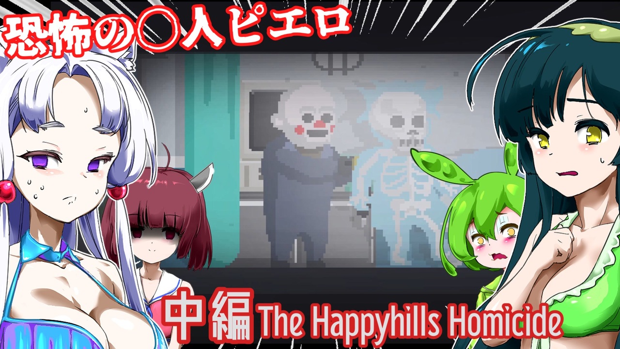 前編→<a href="https://www.nicovideo.jp/watch/sm44016675" class="watch">sm44016675</a><br>後編→<a href="https://www.nicovideo.jp/watch/sm44102733" class="watch">sm44102733</a><br>ずんだもん、東北きりたん、東北ずん子、東北イタコが海外のホラーゲームに挑むようです。<br><br>◎あらすじ◎<br>ピエロに扮し、次々に人々を惨〇していく主人公。<br>そしてそんな主人公を追う刑事。<br>主人公はなぜ惨たらしく人の命を奪うのか?<br><br>※投稿者のガバ翻訳付きです。<br>配信ページ 日本語非対応<br><a href="https://gamejolt.com/games/thehappyhillshomicide/570127" target="_blank" rel="noopener nofollow">https://gamejolt.com/games/thehappyhillshomicide/570127</a><br><br>VOICEVOX:ずんだもん<br><a href="https://voicevox.hiroshiba.jp/" target="_blank" rel="noopener nofollow">https://voicevox.hiroshiba.jp/</a><br><br>COEIROINK:ネルカウニ<br>COEIROINK:巧兄<br>COEIROINK:真賢木ミロク<br>COEIROINK:黒聡鵜月<br>COEIROINK:涙目コロン<br>COEIROINK:おふとんP<br>COEIROINK:繰推亭そそる<br><a href="https://coeiroink.com/" target="_blank" rel="noopener nofollow">https://coeiroink.com/</a><br><br>BGMをお借りしました。<br><a href="https://otologic.jp/" target="_blank" rel="noopener nofollow">https://otologic.jp/</a><br><br>立ち絵をお借りしました。<br><a href="https://seiga.nicovideo.jp/seiga/im10933652" target="_blank" rel="noopener nofollow">https://seiga.nicovideo.jp/seiga/im10933652</a><br><a href="https://seiga.nicovideo.jp/seiga/im11230837" target="_blank" rel="noopener nofollow">https://seiga.nicovideo.jp/seiga/im11230837</a><br><a href="https://seiga.nicovideo.jp/seiga/im11229020" target="_blank" rel="noopener nofollow">https://seiga.nicovideo.jp/seiga/im11229020</a><br><a href="https://seiga.nicovideo.jp/seiga/im4817713" target="_blank" rel="noopener nofollow">https://seiga.nicovideo.jp/seiga/im4817713</a>