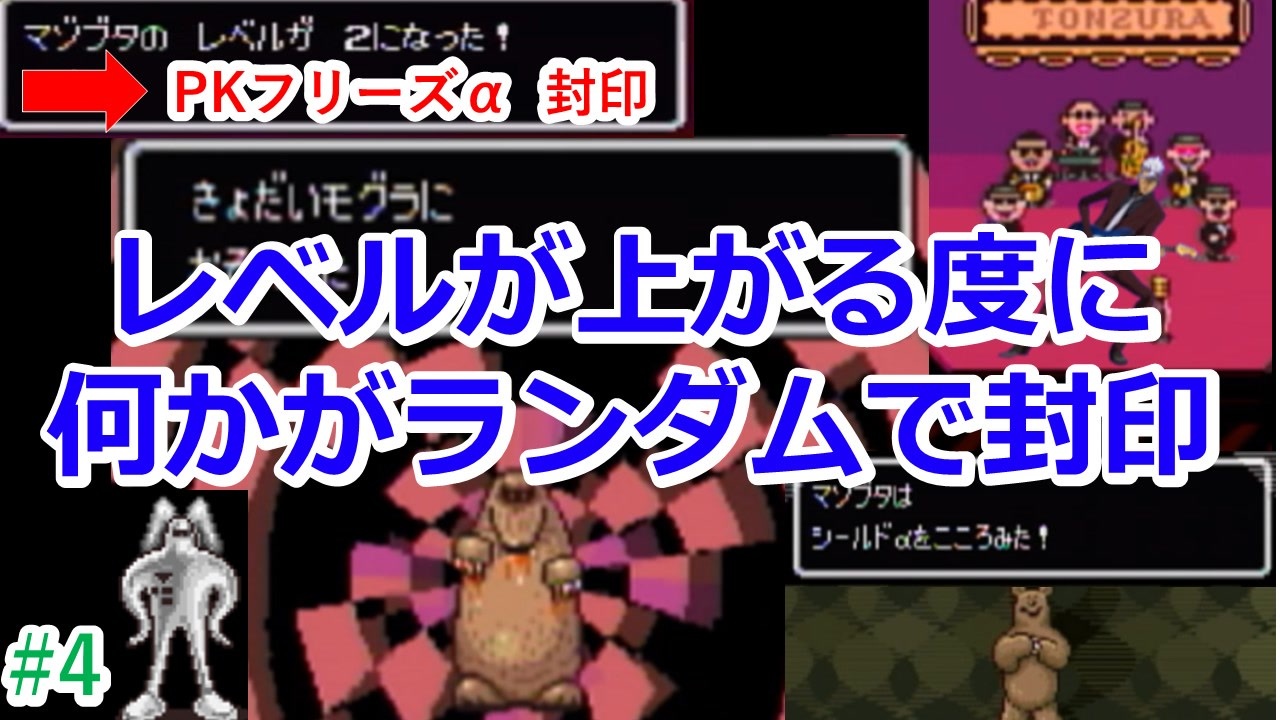 <a href="https://www.youtube.com/watch?v=xCrO6Bqd0Hw" target="_blank" rel="noopener nofollow">https://www.youtube.com/watch?v=xCrO6Bqd0Hw</a><br>youtubeにDQ5封印縛りのコメ付総集編をアップしました!<br>なつかしい~!けど、男の子と女の子の生誕エピソードがキモすぎますね・・・<br>4年も経てば、落ち着いた実況ができるようになってきたのでしょうか?<br><br>縛り内容<br>・レベルが1上がる度にランダムでPSI・道具・固有コマンド・一部のNPCが封印される。<br>・経験値が入る戦闘にて、パーティ内の最低レベルの仲間が死亡している状態での戦闘終了禁止。<br>・進路上の空間にいる敵は全て撃破。ただし、追ってこない敵は倒す必要がない。<br>・逃走禁止。<br>・ボスは試行回数殴りOK。(敗戦後、道中を飛ばして再戦可)<br><br>(封印対象物について)<br>・イベント進行不可に陥った場合の封印物使用はOK。<br> (テレポートα習得イベント時のサルへのプレゼント、ラスボス戦の「いのる」等)<br>・「こわれたアイテム」が封印されても修理可。換金のみが禁止。<br>・「テレポートαβ」「キャッシュカード」「換金不可 且つ 効果のないアイテム」は封印対象外。<br><br><br>過去シリーズ → <a href="https://www.nicovideo.jp/mylist/71307387" target="_blank" rel="noopener">mylist/71307387</a><br>告知 → <a href="https://twitter.com/mazoriahosh" target="_blank" rel="noopener nofollow">https://twitter.com/mazoriahosh</a><br>youtube → <a href="https://www.youtube.com/watch?v=qskHDlLNypY" target="_blank" rel="noopener nofollow">https://www.youtube.com/watch?v=qskHDlLNypY</a>