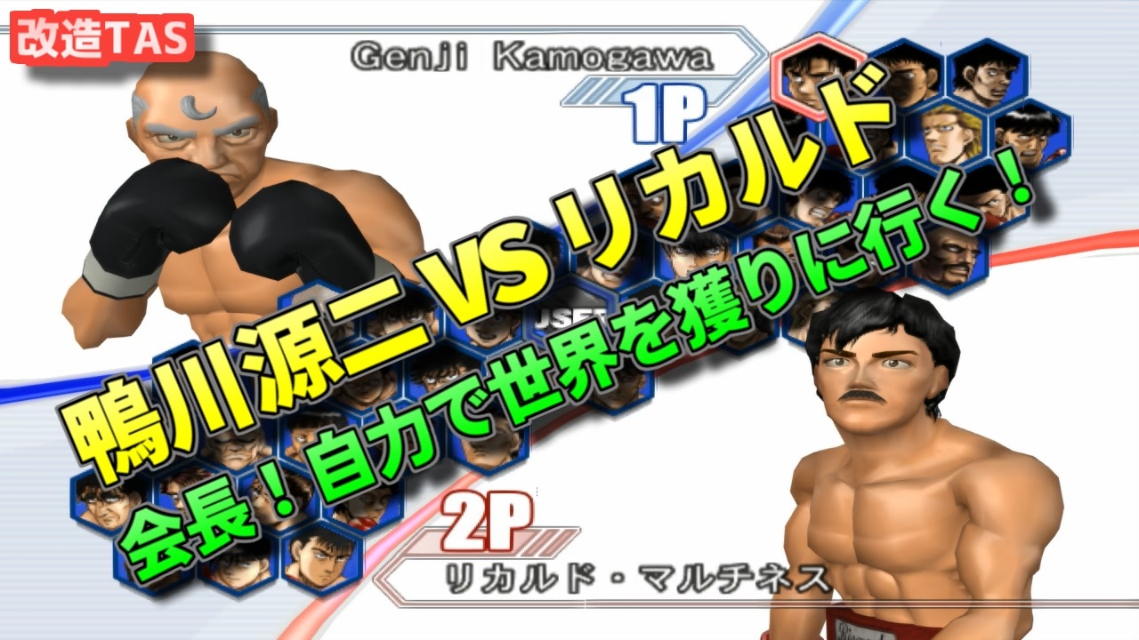 一歩が壊れたので責任を取って鴨川会長が世界に挑戦しました(適当)<br>あの弟子にしてこの師匠ありと言ったところでしょうか<br>カウント中に殴れるセッティングです<br><br>使用ソフト:はじめの一歩2 VICTORIOUS ROAD PS2版<br>レフェリーカウント中にも動ける様に改造しました<br />動画に「いいね!」「マイリスト登録」よろしくお願いします。<br><br>・おすすめ<br>[TAS]Grand Theft Auto 3 Part1→<a href="https://www.nicovideo.jp/watch/sm14718961" class="watch">sm14718961</a><br>[TAS]MaxPayne デッドターゲット Part1→<a href="https://www.nicovideo.jp/watch/sm15093299" class="watch">sm15093299</a><br>[TAS]michigan Part1→<a href="https://www.nicovideo.jp/watch/sm18393230" class="watch">sm18393230</a><br><br>サポート頂けると励みになります<br>魔界塔士のサポーターになる→<a href="https://creator-support.nicovideo.jp/registration/15153622" target="_blank" rel="noopener nofollow">https://creator-support.nicovideo.jp/registration/15153622</a><br><br>TAS動画まとめ→<a href="https://koeiprogenitor.com/tas/matome/" target="_blank" rel="noopener nofollow">https://koeiprogenitor.com/tas/matome/</a><br>つべ→<a href="https://www.youtube.com/user/koeiprogenitor1/" target="_blank" rel="noopener nofollow">https://www.youtube.com/user/koeiprogenitor1/</a><br>インスタ→<a href="https://www.instagram.com/makaitoshi" target="_blank" rel="noopener nofollow">https://www.instagram.com/makaitoshi</a><br><br>本編→シリーズ一覧見てね<br>