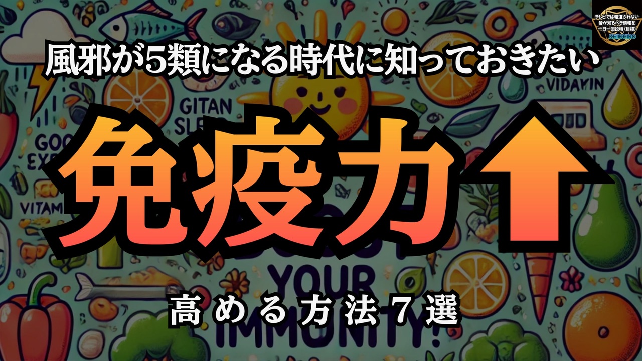 免疫力を高めるためには、<br>バランスの取れた食事、十分な睡眠、適度な運動、ストレス管理、水分補給、禁煙と適度なアルコール摂取、適切な体重維持が重要です。<br><br>ビタミンCは柑橘類やブロッコリーから摂取でき、ビタミンDは日光や魚介類で補います。<br>亜鉛は免疫細胞を助け、肉類やナッツに含まれます。<br><br>プロバイオティクスは腸内環境を整え、ヨーグルトや発酵食品が有益です。<br><br>毎晩7〜9時間の睡眠、週150分程度の運動、ストレス管理、1.5〜2リットルの水分摂取、禁煙と適度な飲酒が推奨されます。<br><br>適切な体重維持も免疫力向上に繋がります。<br><br>政府やメディアの情報には注意が必要で、ストレスを減らし、自然に続けられる方法を見つけることが理想です。<br><br><br>免疫力を上げる方法 ワクチン 免疫力低下 ワクチン後遺症 コロナ後遺症 妄想です<br><br>ビタミンC ビタミンD 日光浴 亜鉛 睡眠 <br><br>運動 ストレス バランスの取れた食事<br>プロバイオティクス 水分補給 適切な体重維持<br><br />著作権、肖像権に配慮して作成しております。<br><br>◆気になったニュースの台本!?<br>メモ代わりに作った台本をそのままあげてます<br><a href="https://keiichiro8140.hatenablog.com/." target="_blank" rel="noopener nofollow">https://keiichiro8140.hatenablog.com/.</a><br><br><br>ここからはシリーズ紹介<br><br><br>◆ ワクチン解毒・デトックス<br><a href="https://x.gd/fZweg" target="_blank" rel="noopener nofollow">https://x.gd/fZweg</a><br><br>◆ウイリアム・マキス博士のがん治療(イベルメクチン・フェンベンダゾール等)<br><a href="https://x.gd/AtFYS" target="_blank" rel="noopener nofollow">https://x.gd/AtFYS</a><br><br>◆予防接種健康被害救済制度<br><a href="https://x.gd/0xK9x" target="_blank" rel="noopener nofollow">https://x.gd/0xK9x</a><br><br>◆気になったニュース #1501~<br><br>◆ 【ショートver】気になったニュース<br><a href="https://x.gd/7MxXC" target="_blank" rel="noopener nofollow">https://x.gd/7MxXC</a><br><br>◆ 気になったニュース #1001~<br><a href="https://x.gd/Lp8gv" target="_blank" rel="noopener nofollow">https://x.gd/Lp8gv</a><br><br>◆ 気になったニュース #501~<br><a href="https://x.gd/EmbS4" target="_blank" rel="noopener nofollow">https://x.gd/EmbS4</a><br><br>◆ 気になったニュース #1~#500<br><a href="https://x.gd/uPhNb" target="_blank" rel="noopener nofollow">https://x.gd/uPhNb</a><br><br>◆ X(旧Twitter)・テレグラムで気になった情報<br><a href="https://x.gd/YG6FT" target="_blank" rel="noopener nofollow">https://x.gd/YG6FT</a><br><br>◆ 日比谷5万人パレードデ⚪生放送アーカイブ動画<br><a href="https://x.gd/3CHJv" target="_blank" rel="noopener nofollow">https://x.gd/3CHJv</a><br><br>◆日比谷5万人パレード⚪モのマイリスト作ってみました<br><a href="https://nico.ms/mylist/76828848?ref=sp_other" target="_blank" rel="noopener nofollow">https://nico.ms/mylist/76828848?ref=sp_other</a><br><br>◆3.30 令和の百姓⚪⚪<br><a href="https://www.nicovideo.jp/series/511791?ref=garage_share_other" target="_blank" rel="noopener nofollow">https://www.nicovideo.jp/series/511791?ref=garage_share_other</a><br><br>◆ 及川幸久さんの【XNEWS】シリーズ<br><a href="https://x.gd/3k78K" target="_blank" rel="noopener nofollow">https://x.gd/3k78K</a><br><br>◆これまでの動画<a href="https://x.gd/sPXoJ" target="_blank" rel="noopener nofollow">https://x.gd/sPXoJ</a><br><br>◆もしも(BAN)の時のためのマイリンク集<a href="https://lit.link/K-16_News44" target="_blank" rel="noopener nofollow">https://lit.link/K-16_News44</a><br><br>